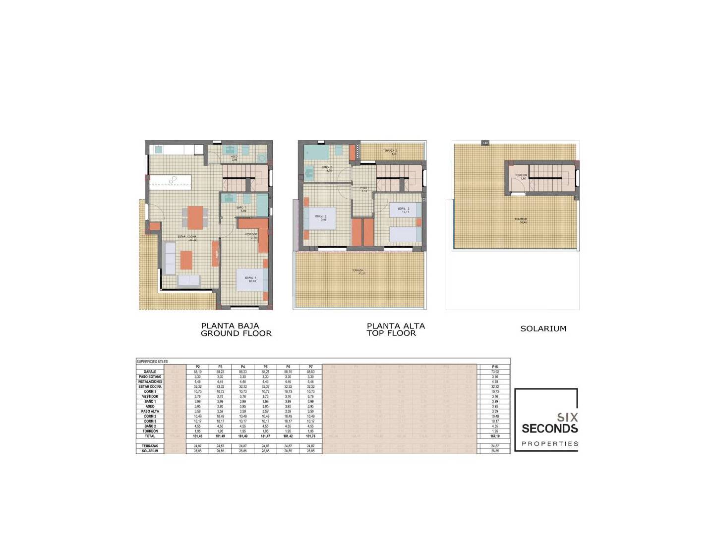 Chaque villa est conçue sur deux étages plus un sous-sol comme garage et un solarium spectaculaire, pour profiter au maximum du climat méditerranéen. Chacune est située sur des parcelles entre 194 m2 et 240 m2, avec une fantastique piscine privée et un parking.