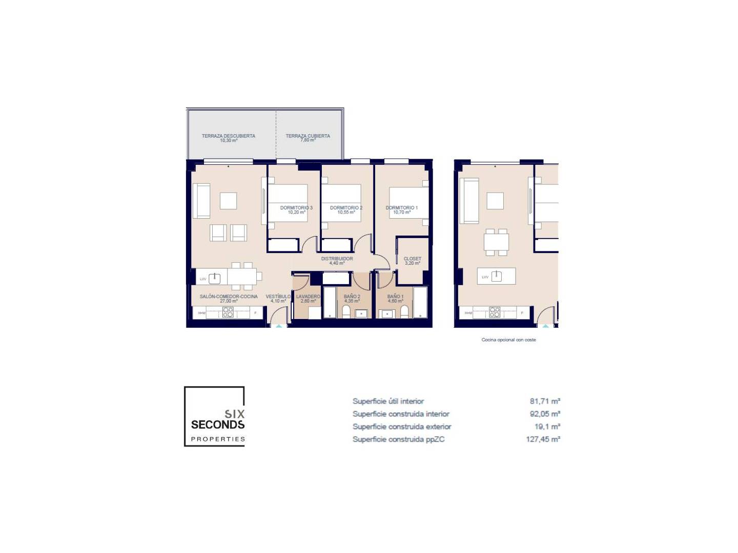 Cet appartement luxueux dispose de 3 chambres, 2 salles de bains , d'une cuisine ouverte, d'un salon et d'une terrasse privée. De plus, moyennant un supplément, vous pouvez disposer de votre propre place de parking et d'un débarras privé.
