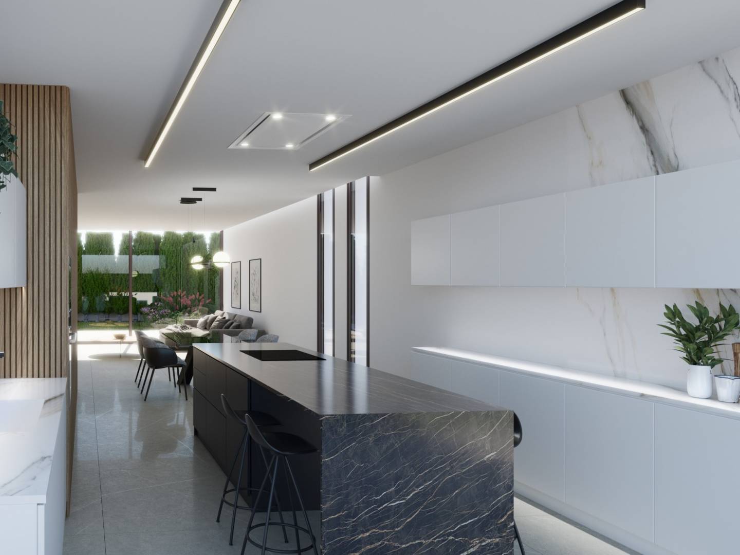 Les villas sont réparties sur deux étages plus un sous-sol et une terrasse ensoleillée. Le sous-sol dispose d'un accès indépendant depuis l'extérieur par un escalier pratique. Il dispose également d'un jardin intérieur accessible, qui apporte de la lumière naturelle et de l'air frais aux pièces.