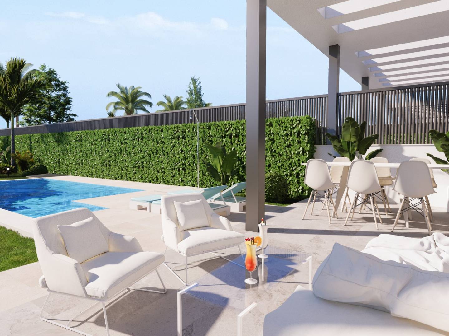 Les extérieurs ont été conçus pour offrir des espaces verts en harmonie avec le paysage côtier. Chaque villa dispose d'un jardin privé et d'une superbe piscine, idéale pour profiter du climat méditerranéen. Avec un accès direct au front de mer depuis le jardin, ces villas offrent la possibilité de vivre en bord de mer dans un cadre de rêve.