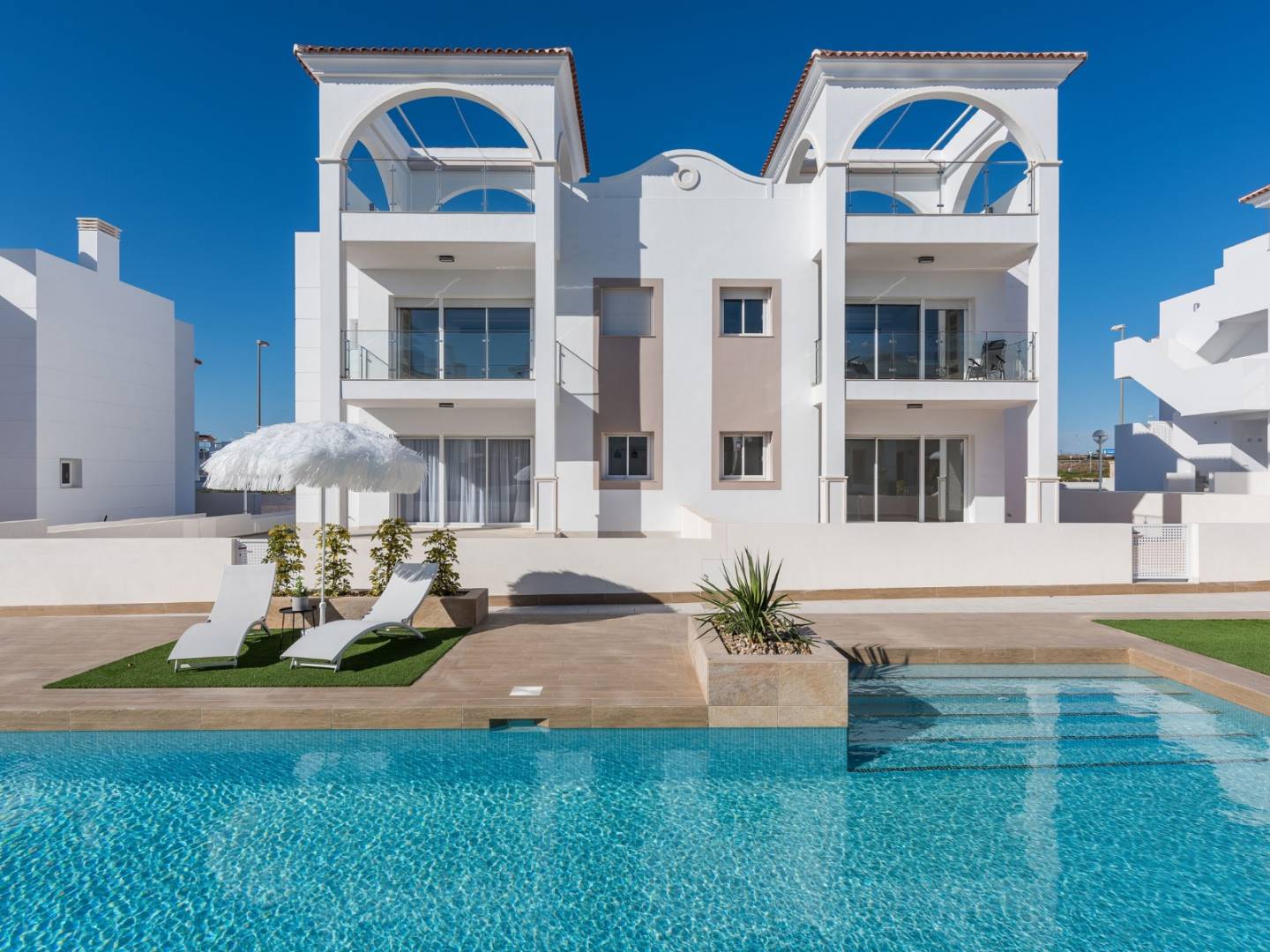 Dans le quartier résidentiel Allegra, vous trouverez différents modèles de logements : appartements et duplex mitoyens. Il s'agit d'une communauté fermée, avec de beaux jardins, une piscine commune et un parking, conçue dans un style méditerranéen.