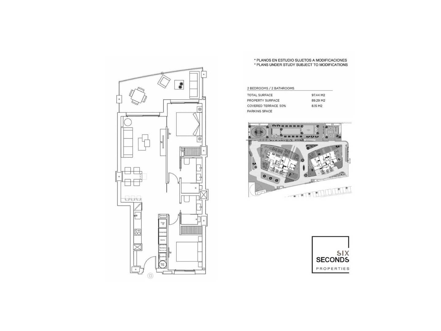La propriété a une superficie totale de 97,44 m² , répartie en 89,29 m² de surface intérieure et 8,15 m² de terrasse, parfaite pour profiter des vues impressionnantes et de la brise marine. L'appartement dispose de 2 chambres , 2 salles de bains , une cuisine ouverte et un grand salon qui maximise l'espace et la luminosité.