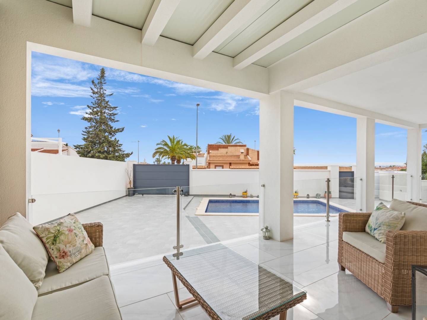 Située dans l'un des quartiers les plus exclusifs et tranquilles de Ciudad Quesada, cette villa moderne au design contemporain est la maison idéale pour ceux qui recherchent le luxe, le confort et une excellente qualité de vie. Avec un total de 160 m² construits sur un terrain de 500 m², cette propriété offre la combinaison parfaite d'espaces spacieux, de finitions haut de gamme et d'un environnement privilégié, le tout dans un emplacement bien connecté avec un accès facile aux principales attractions de la région. Cette impressionnante villa dispose de 3 chambres spacieuses et lumineuses à l'étage supérieur, chacune avec sa propre salle de bains et de grandes fenêtres permettant de profiter de la beauté de l'environnement naturel. Deux des chambres ont un accès direct à une terrasse privée, offrant ainsi intimité et confort. De plus, il y a un toilette invité au premier étage pour le confort des résidents et de leurs invités. La cuisine de style indépendant est équipée d'appareils électroménagers de haute qualité et d'un îlot central. Le design ouvert et fluide s'intègre parfaitement à l'agencement de la maison, créant un espace idéal pour socialiser et passer du temps en famille ou entre amis. Depuis le salon, une vue panoramique s'ouvre devant vous, offrant une atmosphère relaxante et baignée de lumière. Le jardin abrite une piscine privée, où vous pourrez profiter du climat méditerranéen chaud en toute intimité. L'espace extérieur est parfaitement aménagé avec une terrasse conçue pour vous aider à vous détendre et à vous relaxer dans la zone chillout, ou pour dîner en plein air, ainsi qu'un espace paysager idéal pour ceux qui souhaitent profiter de l'extérieur sans quitter la maison. Les vues panoramiques depuis la propriété vers la côte et l'environnement naturel environnant sont tout simplement époustouflantes. Le débarras extérieur, discrètement situé sur un côté de la propriété, est un espace autonome qui se fond parfaitement dans le design de la maison, offrant une excellente solution pour un stockage supplémentaire. Pour garantir un confort optimal tout au long de l'année, la villa est équipée de la climatisation dans toutes les pièces. De plus, la propriété dispose d'un parking privé sur le terrain, où vous pourrez garer vos véhicules en toute sécurité et commodité. La propriété est orientée plein sud, ce qui assure une excellente luminosité naturelle et une température agréable tout au long de la journée. Cette orientation optimise également les vues, créant un cadre idéal pour profiter des après-midis ensoleillés et des douces soirées méditerranéennes. La villa se trouve à seulement 15 minutes en voiture des meilleures plages de Guardamar. À seulement 5 minutes de la propriété, vous trouverez une large gamme de commerces, supermarchés et restaurants, vous offrant tout ce dont vous avez besoin pour votre quotidien sans avoir à vous déplacer loin. De plus, les amateurs de golf seront ravis d'apprendre que les parcours de golf les plus proches se trouvent à seulement 10 minutes en voiture, ce qui fait de cette villa l'endroit idéal pour profiter de ce sport. Cette propriété a été conçue pour vous offrir un style de vie confortable, détendu et exclusif, alliant luxe, fonctionnalité et un emplacement enviable. Que ce soit comme résidence principale ou comme maison de vacances, cette villa vous offre tout ce dont vous avez besoin pour profiter pleinement du climat méditerranéen et de la vie sur la Costa Blanca. Ne manquez pas l'opportunité de la visiter. Contactez-nous dès aujourd'hui pour plus d'informations ou pour planifier une visite et découvrir votre nouvelle maison sur la Costa Blanca !