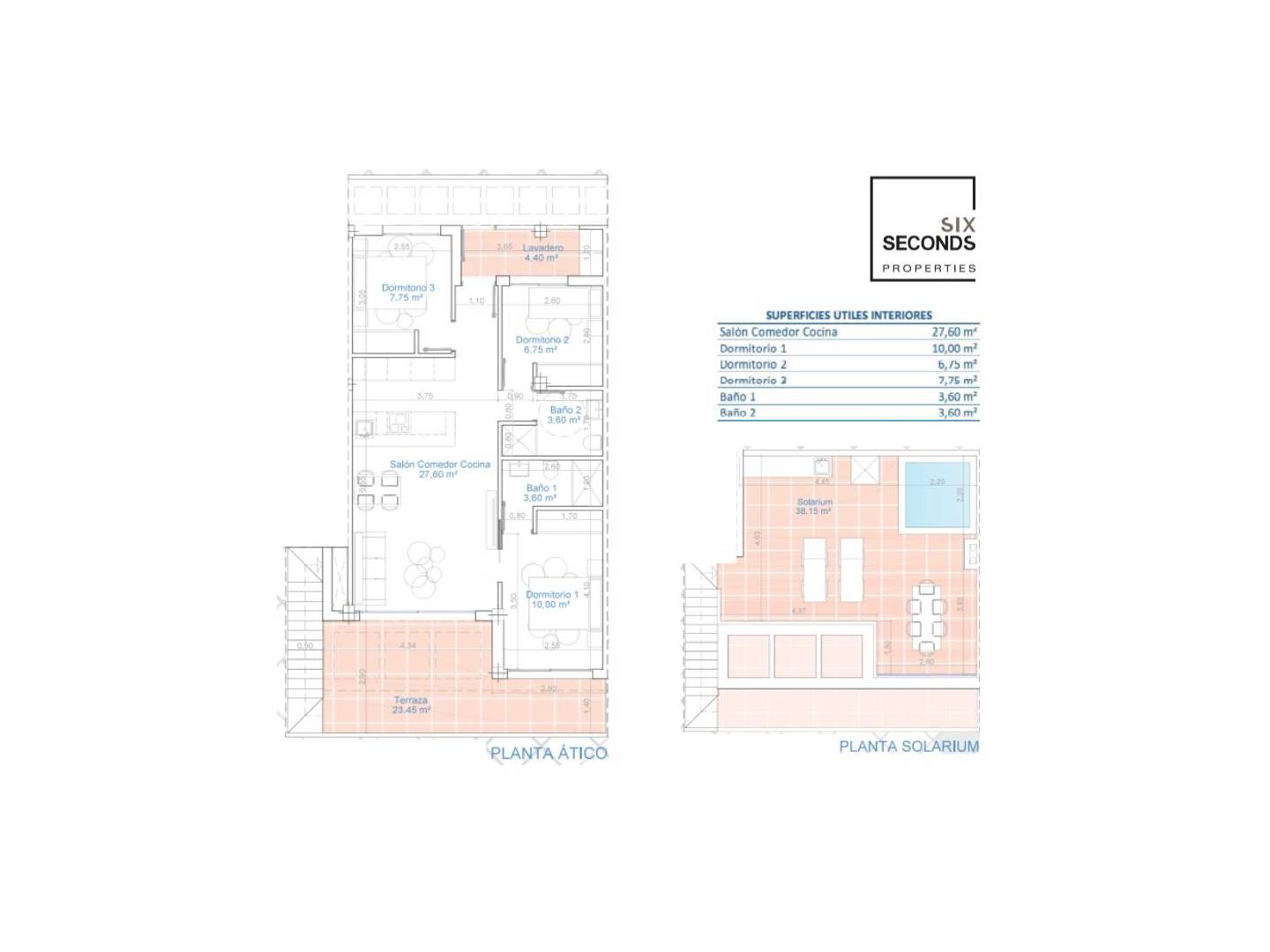 Nous vous présentons ici cet élégant appartement en attique, une maison qui dispose de 3 chambres lumineuses et de 2 salles de bain complètes, conçues avec des matériaux de haute qualité pour offrir un confort maximal. L'appartement s'étend sur une superficie de 76 m², complétée par une terrasse privée de 28 m² et un solarium de 38 m², idéal pour profiter du climat méditerranéen en plein air.