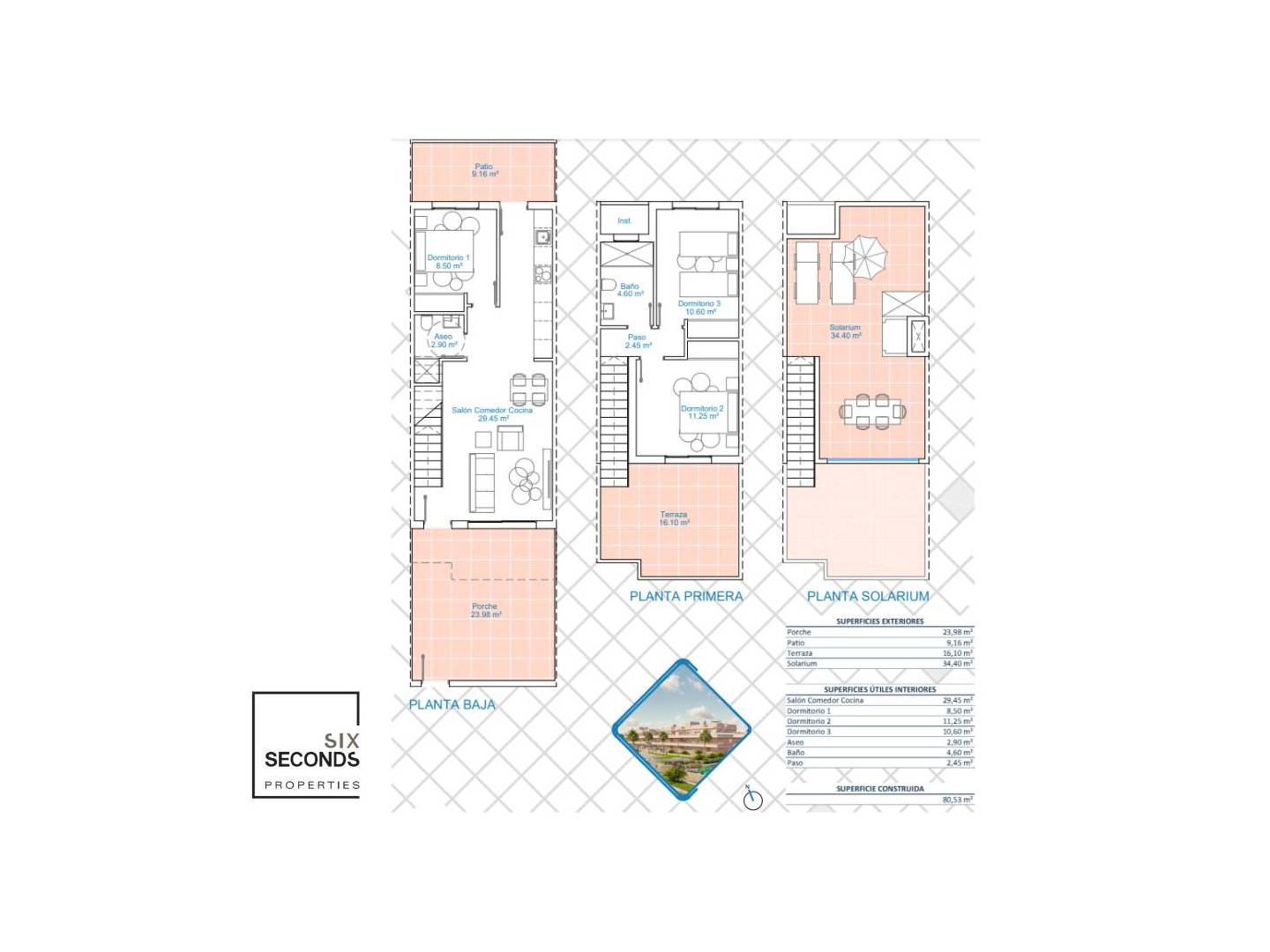 Nous vous présentons ici cette élégante maison de ville en duplex, une maison qui dispose de 3 chambres lumineuses et de 2 salles de bain complètes, conçues avec des matériaux de haute qualité pour offrir un confort maximal. La maison de ville s'étend sur une superficie de 81 m², complétée par un jardin à partir de 33 m², une terrasse privée de 16 m² et un solarium de 34 m², idéal pour profiter du climat méditerranéen en plein air.