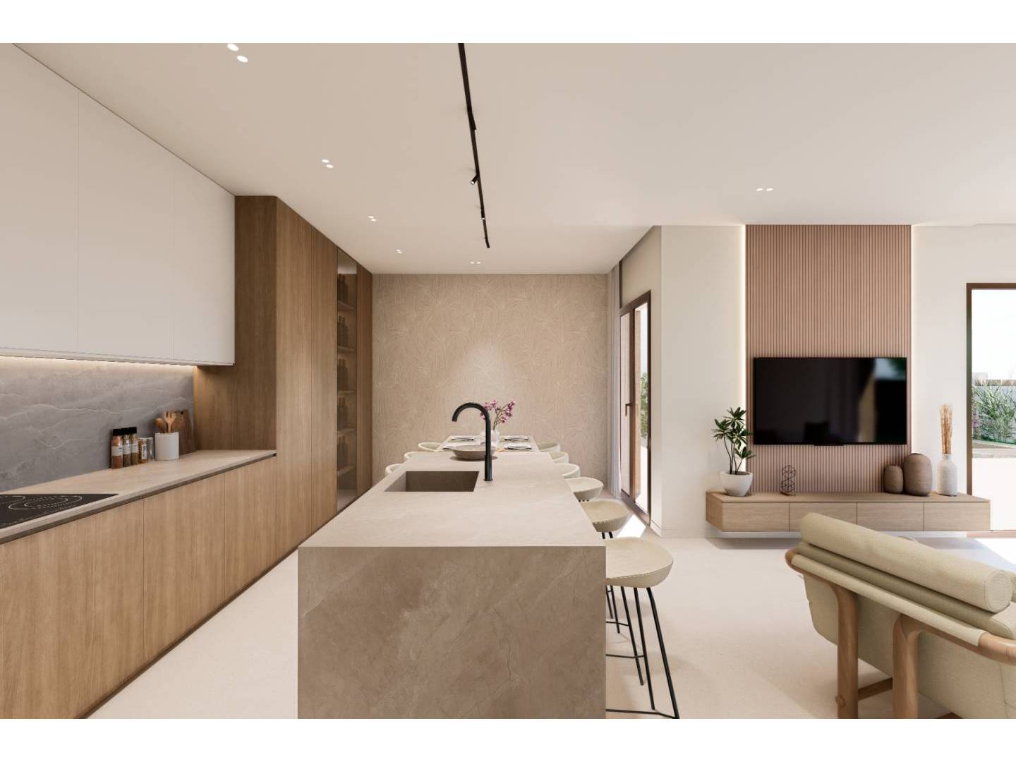 Chaque maison a été conçue pour maximiser la lumière naturelle et offrir des espaces alliant confort et élégance. Les bungalows sont divisés en trois modules avec entrées et escaliers indépendants, garantissant une intimité maximale. La suite parentale redéfinit le concept de confort avec une séparation complète entre l'espace nuit et la salle de bain, garantissant une expérience paisible et sans interruption.