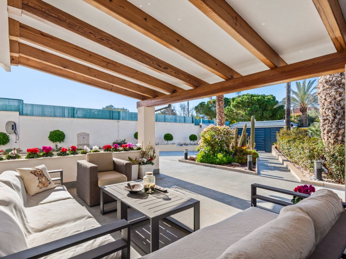 Luxueuse villa de 5 chambres dans l’un des quartiers résidentiels les plus prisés de Playa San Juan, Alicante. La villa est répartie sur trois niveaux et comprend un total de 5 chambres doubles et 3 salles de bain. Au rez-de-chaussée, vous trouverez un grand et lumineux salon, un hall d’entrée, une salle à manger ouverte et une cuisine. La cuisine dispose d’un îlot central et d’un accès direct à la buanderie et au garage. À cet étage, il y a également une salle de bain et une chambre actuellement utilisée comme bureau. Le premier étage se compose de 4 chambres doubles et 2 salles de bain, dont une suite parentale avec une grande salle de bain privative et un dressing. Toutes les autres chambres disposent de placards intégrés. La villa comprend également un sous-sol avec un débarras et une salle de cinéma. Elle est équipée de la climatisation réversible (chaud/froid) dans toute la maison, du chauffage central au gaz, d’un système domotique et d’une porte d’entrée intelligente qui peut être ouverte avec un code ou une clé. À l’entrée, un interrupteur central permet de contrôler tous les volets de la maison. Dans le jardin, vous trouverez une magnifique piscine ainsi qu’une cuisine extérieure équipée d’un barbecue, d’un évier, d’un réfrigérateur et de placards. Un espace repas y est également aménagé. Derrière la cuisine extérieure se trouve une salle de bain pour les invités. Le jardin dispose également d’un parking pour 3 voitures en plus du grand garage. La porte du garage ainsi que le portail donnant sur la rue sont automatiques. De plus, il y a une grande zone avec du gazon artificiel, idéale pour un espace de jeux. Un jardin d’herbes aromatiques ainsi qu’une terrasse couverte avec un coin salon complètent les extérieurs. La villa est située dans un quartier exclusif d’Alicante, à proximité de toutes les commodités.