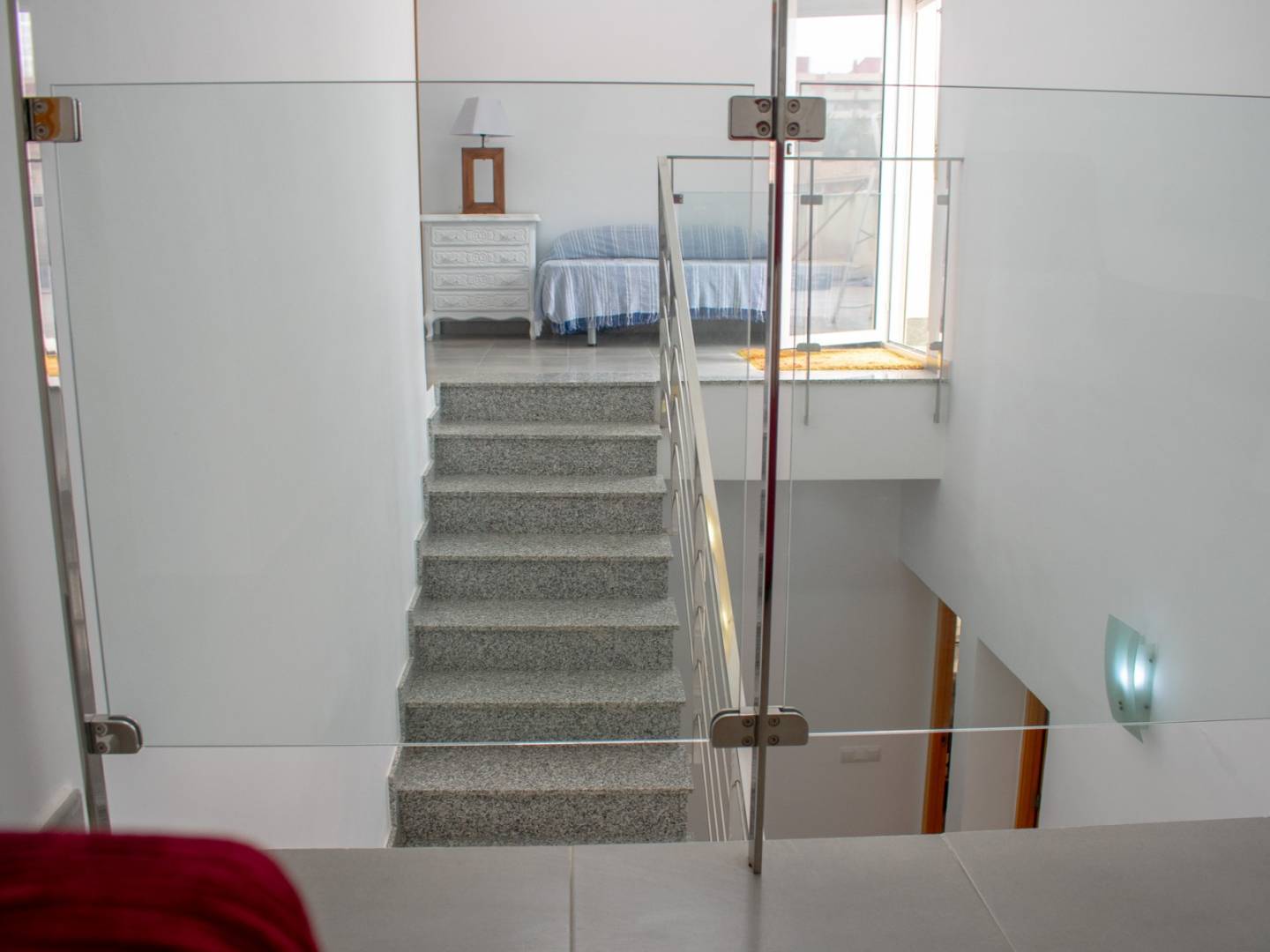 L' étage supérieur , ajouté en 2016 , comprend trois chambres supplémentaires : une avec salle de bains privative et les deux autres partageant une salle de bains privative complète . Il dispose également d'une grande terrasse , d'un solarium et d'une tour , idéale comme refuge privé ou point de vue panoramique.