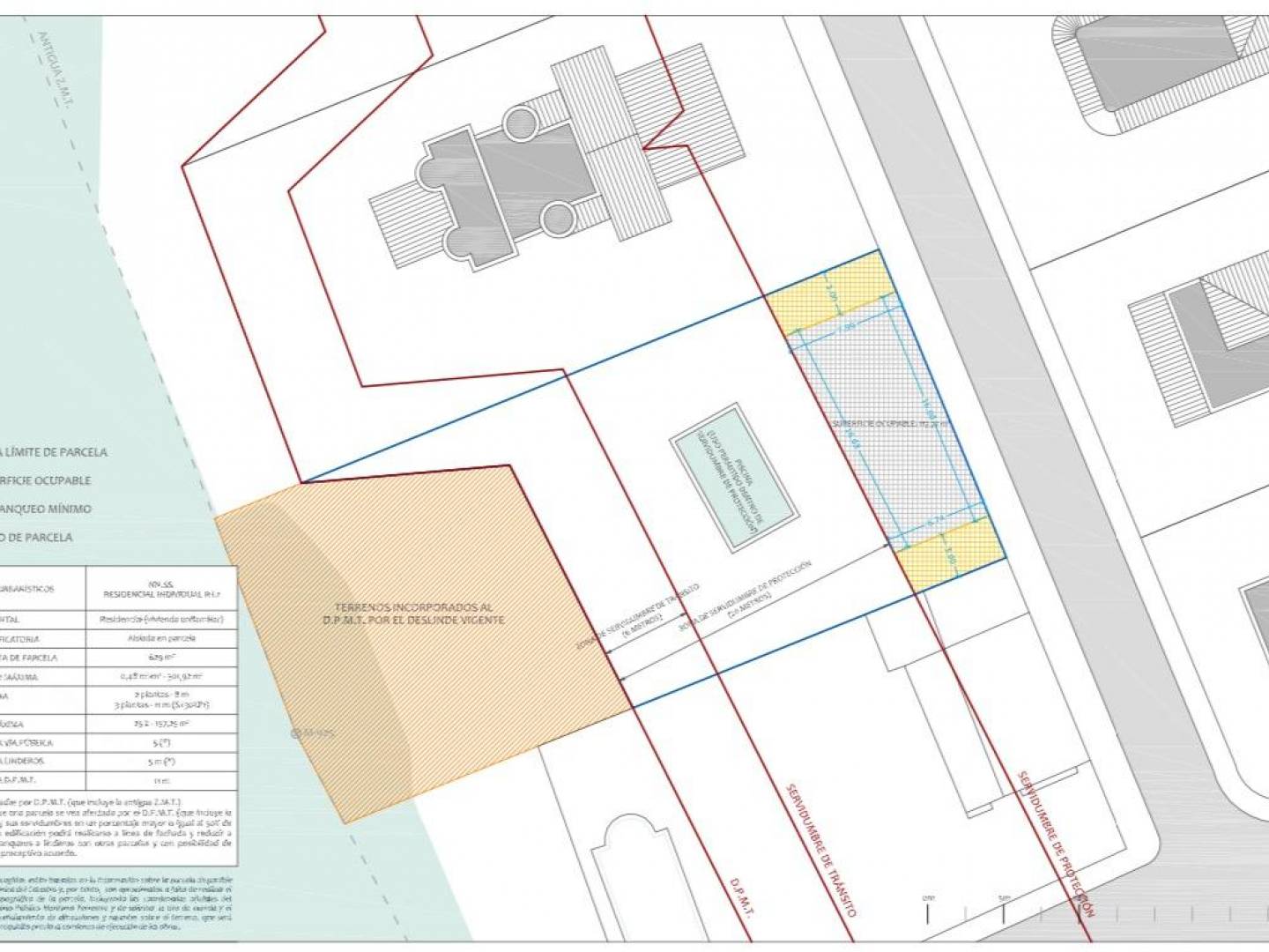 La Manga del Mar Menor, un terrain de 629 m2 face à la mer avec sa propre plage, convient à la construction d'une maison unifamiliale avec une maison à deux étages de 157 m2.