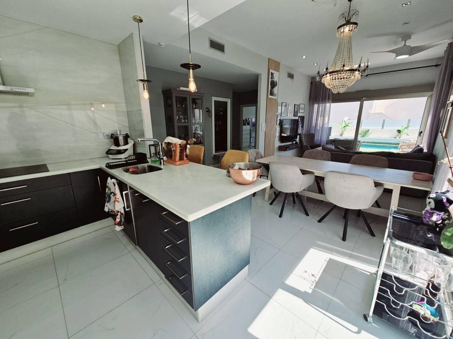 Découvrez cette villa de trois étages située dans le quartier prisé de Villamartín-Las Filipinas à Orihuela Costa. Une propriété alliant à la perfection élégance, confort et style méditerranéen.