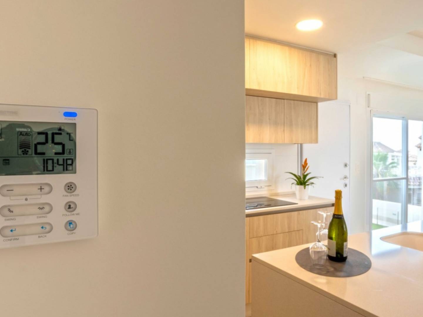 Découvrez la vie surélevée dans le quartier du Blue Lagoon Bienvenue dans cette oasis résidentielle exclusive composée de seulement deux bâtiments élégants, chacun proposant six unités de charme. Niché dans un cadre paisible, ce superbe penthouse de 2 chambres et 2 salles de bains allie luxe moderne, vues imprenables et efficacité exceptionnelle. Design moderne et vues incomparables Entrez dans un espace où bien-être, efficacité et luminosité définissent votre style de vie. Ce penthouse de 79 m² présente un aménagement ouvert avec de grandes fenêtres à double vitrage qui inondent chaque recoin de lumière naturelle. Le point culminant est la vaste terrasse privée sur le toit de 87 m², offrant une vue panoramique sur la mer, les lacs salés et les montagnes. Profitez de plus de 3 000 heures de soleil par an, avec des levers de soleil majestueux et des couchers de soleil époustouflants pour encadrer vos journées. Conçu pour le confort et la durabilité Le luxe rencontre la durabilité sur le toit-terrasse, équipé d'une cuisine extérieure, d'une pergola spacieuse avec parasols horizontaux et verticaux, et de panneaux solaires de 4 100 watts pour répondre à vos besoins énergétiques. Des équipements supplémentaires, comme un lave-linge et un réfrigérateur-congélateur, sont discrètement installés sur la terrasse pour un confort optimal. Style resort : Détendez-vous au bord de l'élégante piscine commune, conçue pour votre bien-être et celui de votre famille. Le complexe comprend également un garage privé et un débarras pour plus de confort et de fonctionnalité. Entièrement meublé et prêt à emménager. Ce penthouse est proposé entièrement meublé et en parfait état, prêt à vous accueillir pour commencer votre nouvelle vie de rêve. Caractéristiques principales : 165 m² de surface habitable (79 m² utiles) 2 chambres spacieuses et 2 salles de bains Garage privé inclus Débarras privé Placards intégrés Climatisation Piscine et espaces verts communautaires Un refuge parfait Échappez à l'agitation et reconnectez-vous à votre essence dans ce paradis serein. C'est plus qu'une maison, c'est un style de vie pour ceux qui apprécient le confort, l'efficacité et la beauté de la nature. Le Lagon Bleu vous appelle, êtes-vous prêt à répondre ? Réservez votre visite dès maintenant !
