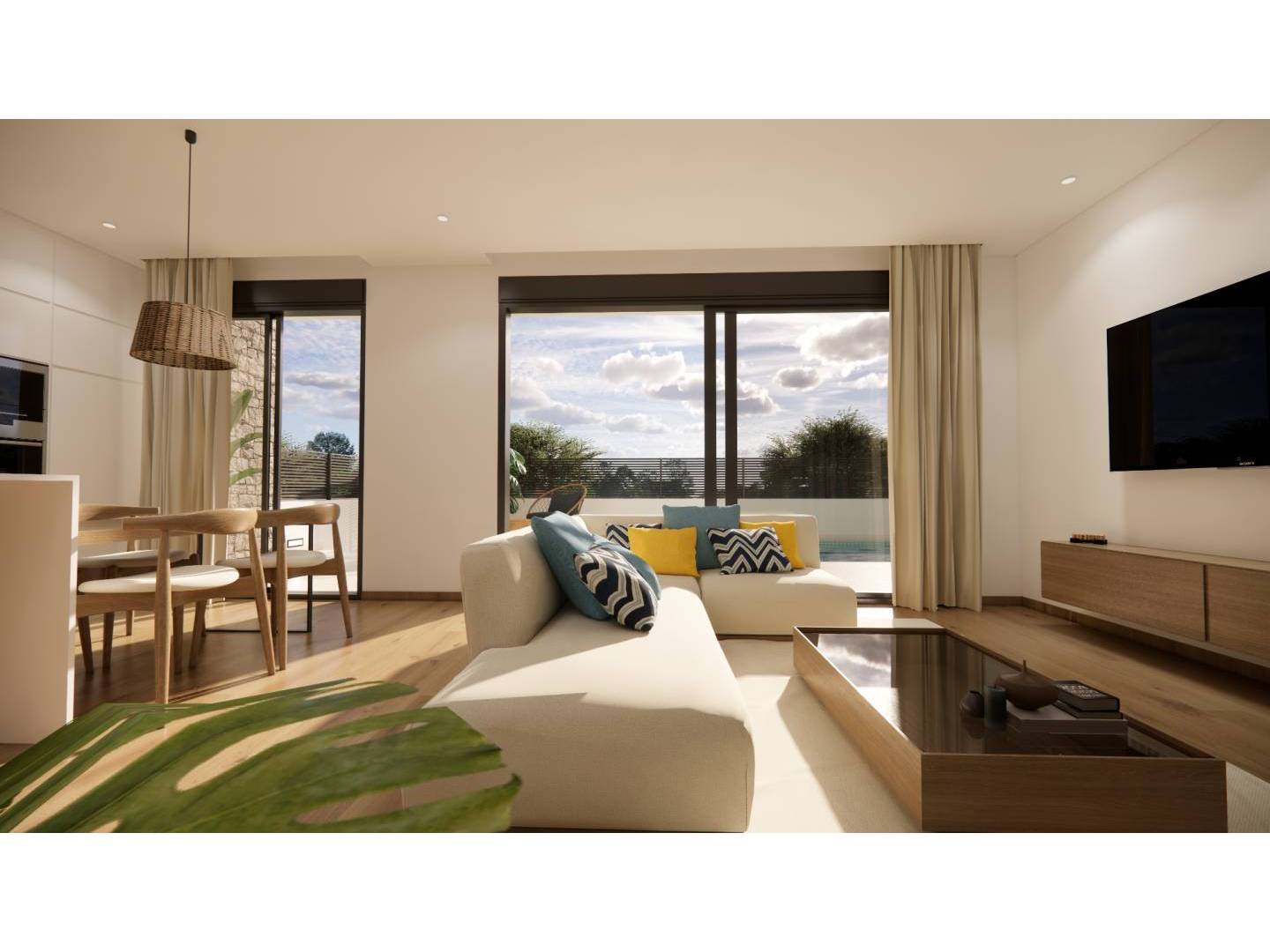Découvrez l'élégance et le confort de ce complexe résidentiel sophistiqué composé de huit villas jumelées, situé dans le charmant quartier de Dolores. Chaque propriété, conçue dans un style contemporain et fonctionnel, offre trois chambres spacieuses, trois salles de bain complètes, une cuisine ouverte entièrement équipée et des placards intégrés optimisant l'espace. Profitez de prestations haut de gamme telles qu'une porte blindée, la climatisation préinstallée et des balcons baignés de lumière naturelle et offrant une vue agréable. Chaque villa dispose d'une spectaculaire terrasse privée et d'une piscine, idéales pour se détendre et profiter du climat méditerranéen toute l'année. Profitez du confort et de la tranquillité d'un emplacement privilégié, idéal aussi bien comme résidence principale que comme investissement.