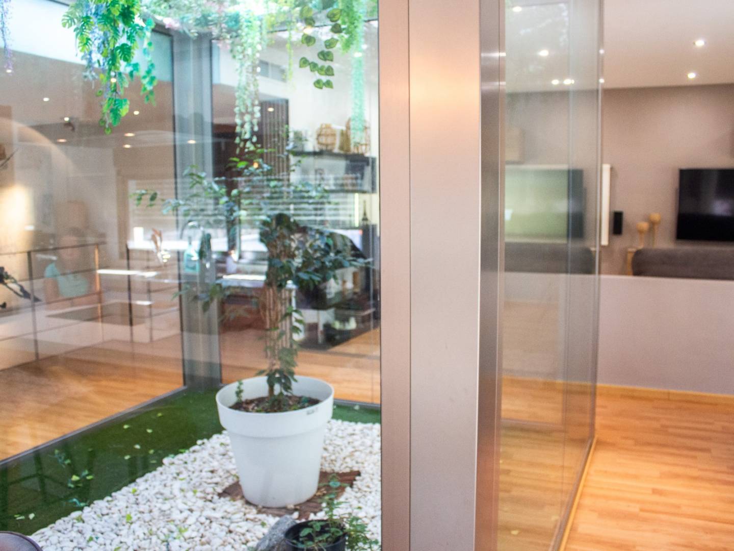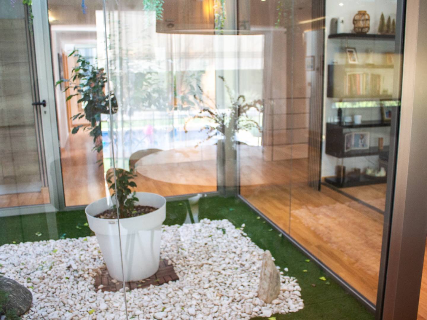 Le cœur de la maison est son jardin central qui baigne de lumière naturelle l'espace de vie, le reliant au salon principal et à la cuisine ouverte design . À l'extérieur, la propriété offre une magnifique piscine , un barbecue , une cheminée extérieure , du gazon synthétique , un chenil et un garage pouvant accueillir trois voitures . La maison est également équipée d'un chauffage au sol et d'un système domotique de pointe, garantissant un confort optimal.