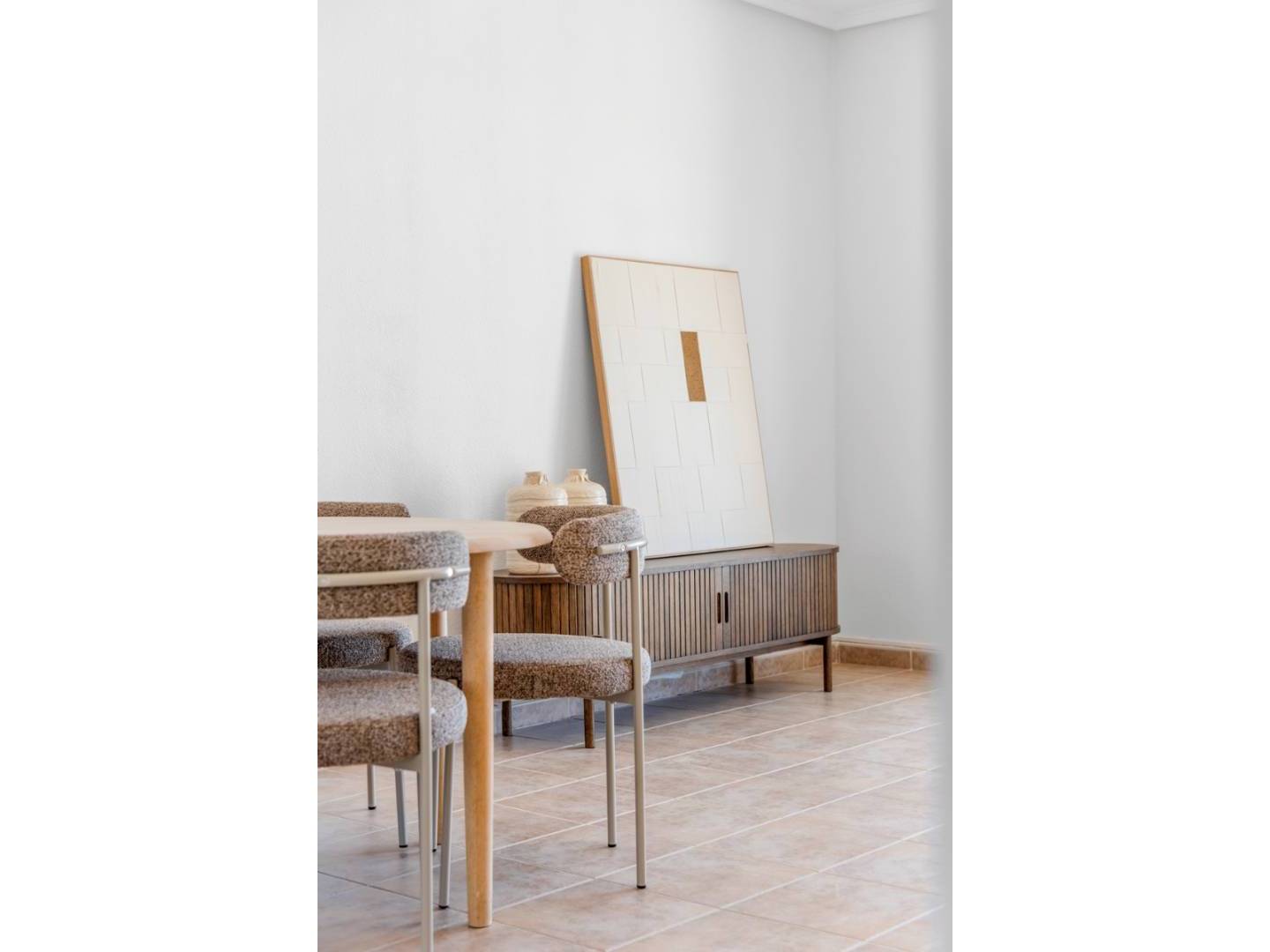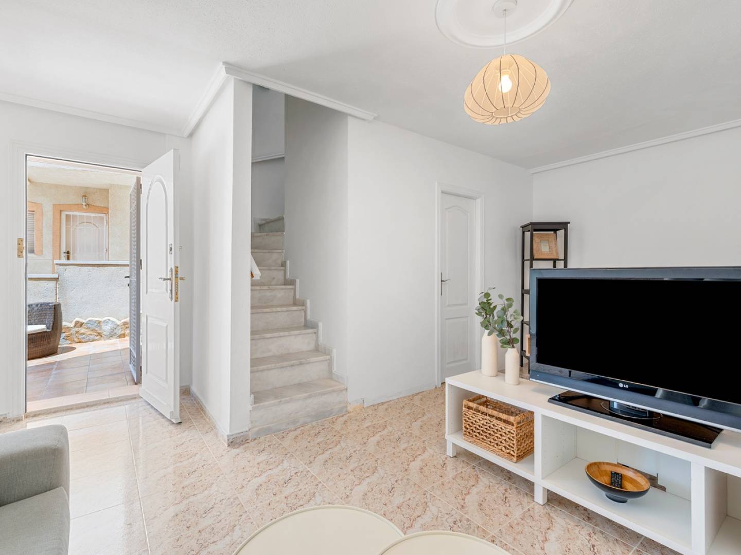 La cuisine récemment rénovée et entièrement équipée s'ouvre sur un spacieux séjour-salle à manger baigné de lumière naturelle. De là, vous accéderez à un charmant balcon avec vue dégagée sur le golf de La Marquesa, ou pourrez profiter d'un dîner en plein air sur l'agréable terrasse avant.