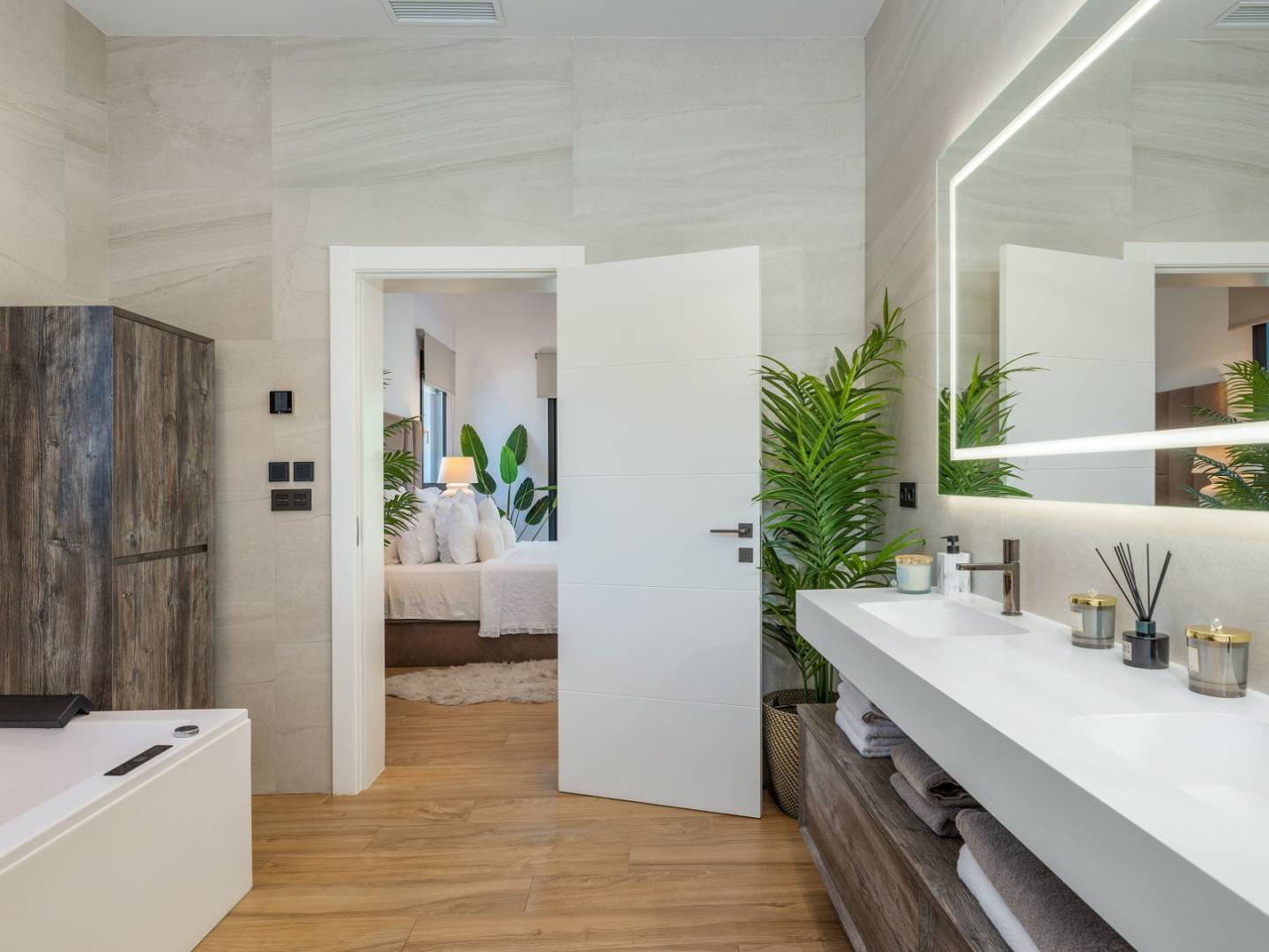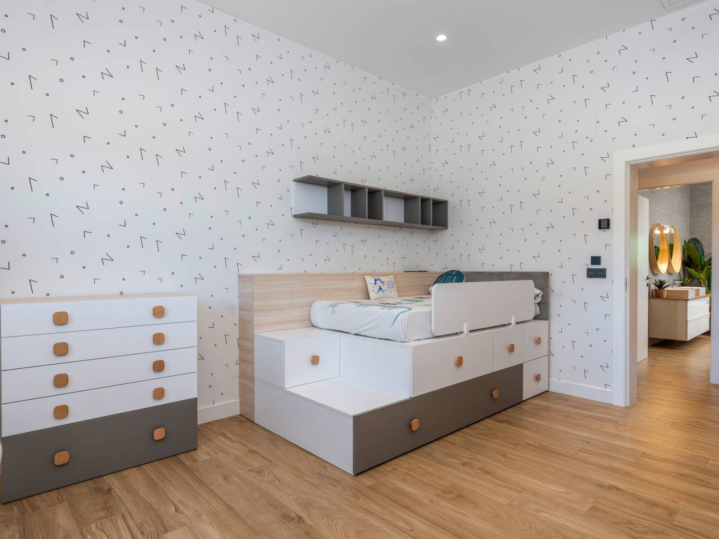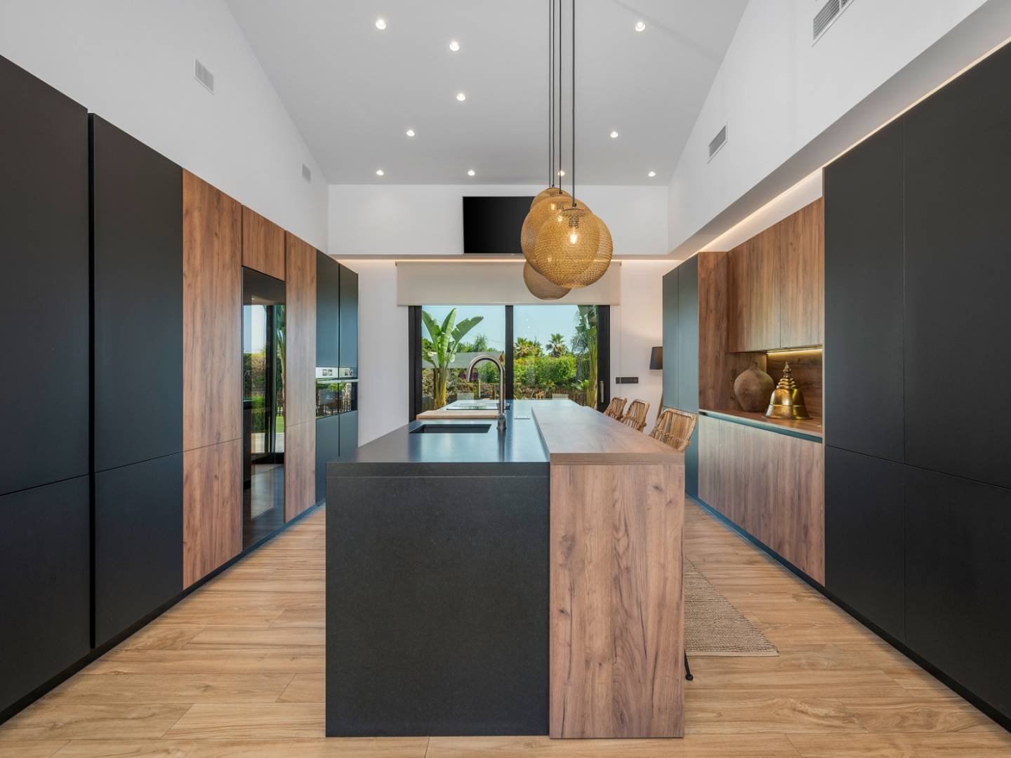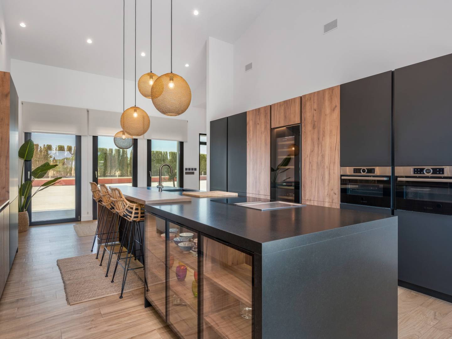 Bienvenue dans cette maison récente, achevée en novembre 2022. Elle est de plain-pied et offre une surface habitable de 320 m² avec une hauteur sous plafond de 5 mètres. La propriété, construite sur un terrain de 17 000 m² entièrement clôturé, bénéficie d'un emplacement idéal, à proximité de l'autoroute entre Elche et Santa Pola, à seulement 4 km de la plage de Santa Pola et 6 km d'Elche. La maison comprend un salon-salle à manger de 45 m² avec cheminée intégrée, relié à une grande cuisine design de 40 m² avec espace repassage et électroménager. La cuisine dispose d'un îlot central de 4 mètres avec bar, d'une cave à vin de 80 bouteilles, de deux réfrigérateurs avec congélateur dissimulés et de plaques de cuisson à induction Bora avec teppanyaki et hotte aspirante. Les rangements sont nombreux et tous les placards et tiroirs sont équipés d'un éclairage intérieur LED. La propriété dispose de 5 chambres spacieuses réparties en un salon pour enfants, un bureau et une salle de sport, une chambre de 20 m², une autre de 18 m² et une suite parentale de 67 m². La suite parentale dispose d'un dressing de 20 m² avec éclairage LED et îlot central, et offre un accès direct au jardin et à la piscine. Toutes les chambres sont équipées de Smart TV. La maison dispose de 3 salles de bain complètes avec douche, d'une salle de bain pour invités dans le salon et de 2 salles de bain avec baignoires balnéo. Toutes les salles de bain sont équipées de douches électroniques avec affichage de la température et de la pression de l'eau, de pommeaux de douche à effet pluie et d'un système audio subaquatique avec radio et Bluetooth. Les 3 salles de bain sont équipées du chauffage au sol. La salle de bain parentale est équipée d'une grande douche double avec siège. En ce qui concerne les équipements, la maison est équipée de la climatisation avec 10 zones Air Zone indépendantes, permettant une température différente dans chaque pièce. Elle est équipée de 3 unités Mitsubishi de 30 000 frigories. Tout est contrôlé depuis 10 écrans couleur répartis dans toute la maison et chaque pièce. Vous pouvez également contrôler l'ensemble depuis votre téléphone portable. La maison est également équipée d'un chauffage au sol avec chaudière à gaz et d'un système Air Zone, permettant de régler la température de chaque pièce. Le système est contrôlable depuis votre téléphone portable. La maison est équipée d'un système de ventilation mécanique contrôlée (VMC) Zhender qui brasse 300 mètres cubes d'air par heure, assurant une ventilation constante, évacuant l'air pollué et les odeurs de l'intérieur et injectant de l'air frais, filtré et à température constante de l'extérieur. Ainsi, il n'est jamais nécessaire d'ouvrir les fenêtres pour aérer la maison. La propriété dispose d'un jardin de 6 000 mètres carrés planté de palmiers et d'oliviers, de 3 200 mètres carrés de pelouse naturelle avec un robot tondeuse automatique, d'une piscine de 8 x 3 mètres avec cascade naturelle et d'une pergola de 20 mètres carrés. La maison est orientée sud-est et dispose de 23 fenêtres de sécurité à double vitrage (4+4 et 6+6) et d'une chambre à gaz argon. La maison bénéficie d'une excellente isolation acoustique et thermique grâce à une toiture ventilée et à un plafond en mousse de polyuréthane et laine de roche. Elle est composée de doubles murs en argile thermolaquée et en briques, avec 600 mm de laine de roche entre les murs. Sa classe énergétique A+++ permet des économies d'énergie importantes, été comme hiver. Tous les stores sont motorisés par Cherubini et contrôlables depuis un téléphone portable. La maison est équipée d'une alarme et de plusieurs capteurs périmétriques, intérieurs et extérieurs, contrôlables depuis un téléphone portable. Elle dispose également de 10 caméras de surveillance extérieures, contrôlables depuis un téléphone portable. Pour plus d'informations ou pour organiser une visite, contactez-nous dès aujourd'hui !