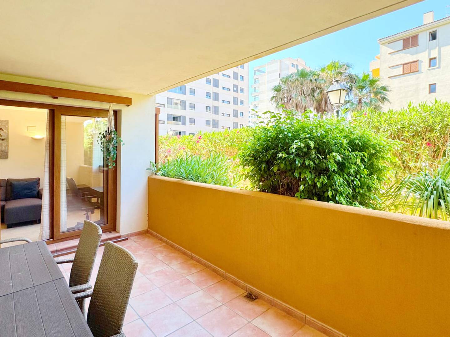 Sa terrasse privative de 12 m² exposée plein sud est idéale pour profiter du climat méditerranéen toute l'année, entourée de jardins et dans un cadre sécurisé. L'appartement comprend une place de parking souterrain , l'accès à deux piscines communes et un système de vidéosurveillance 24h/24.