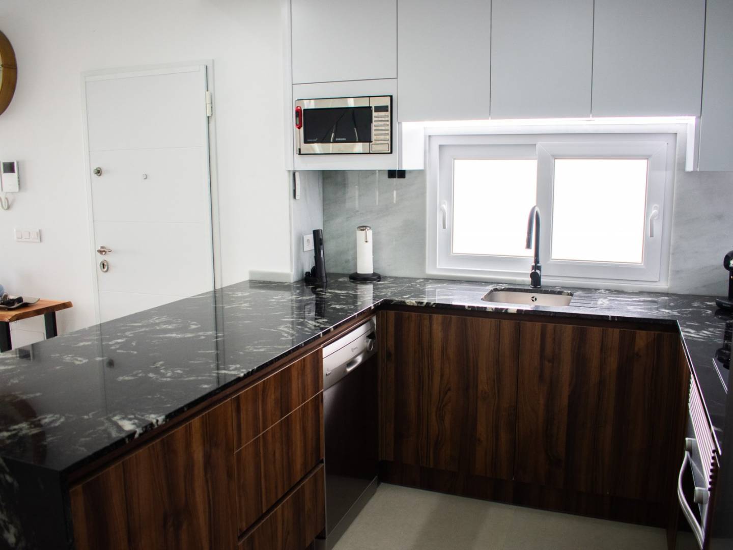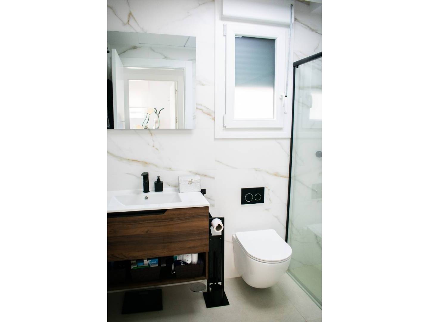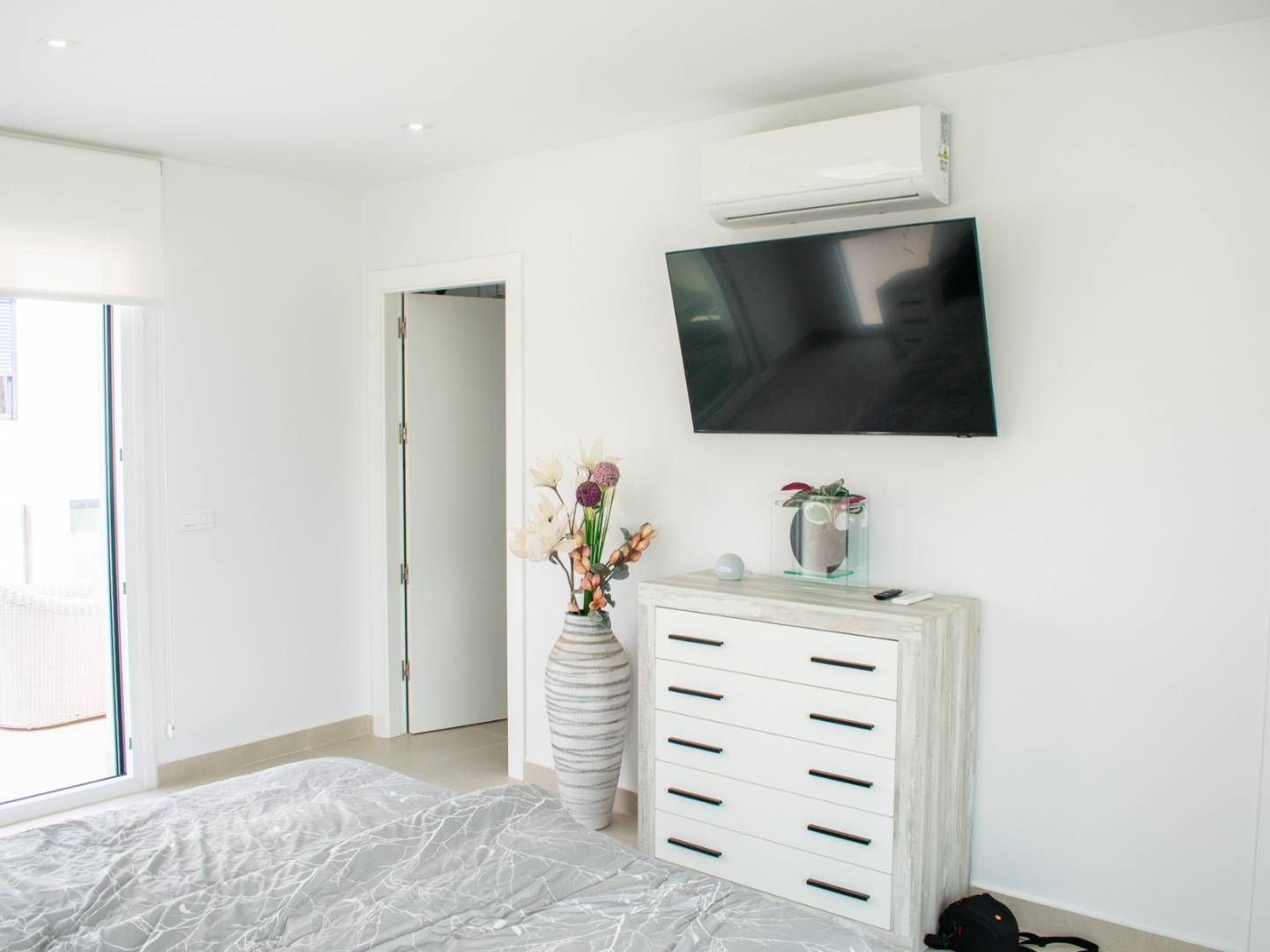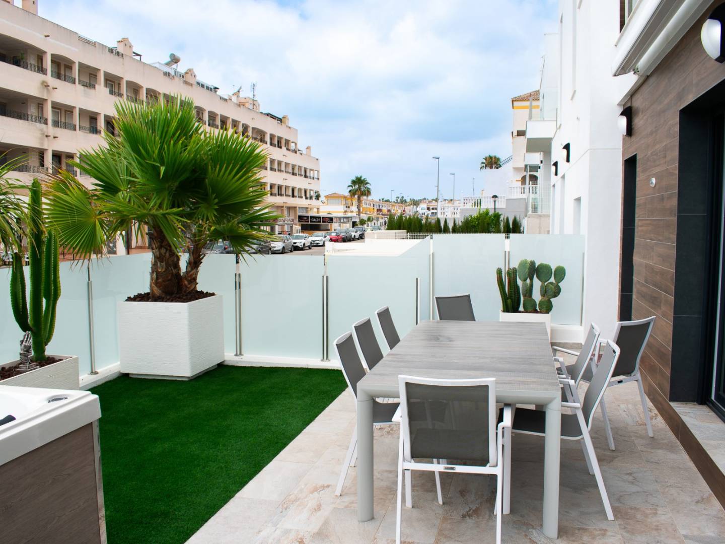 À l'extérieur, la villa offre une piscine privée d'eau salée , du gazon synthétique et une grande terrasse à l'étage équipée d' une table à manger et d' une cuisine extérieure , idéale pour les repas en plein air. Elle est également dotée de panneaux solaires pour une efficacité énergétique optimale et d'un cellier pour un rangement supplémentaire.