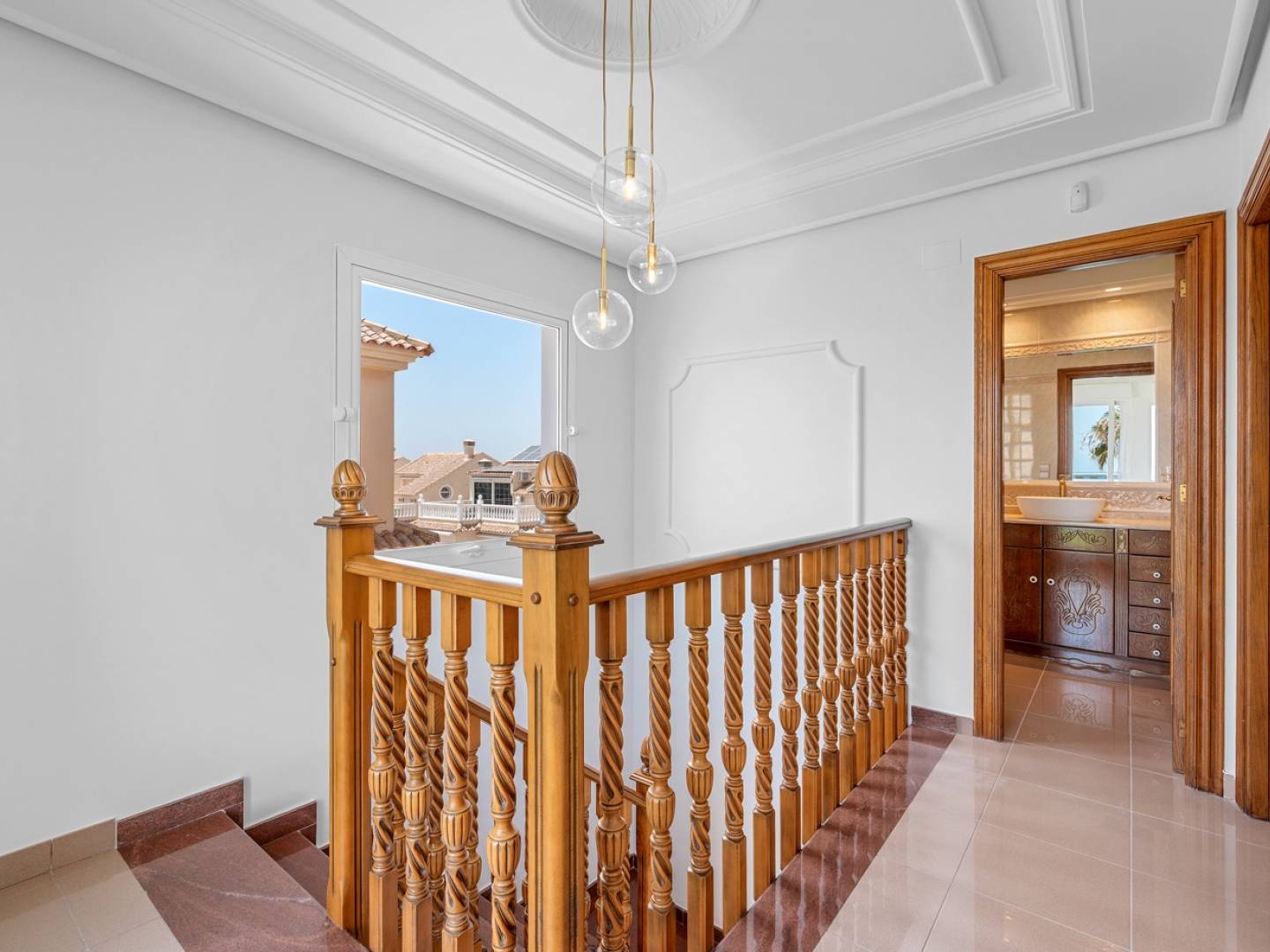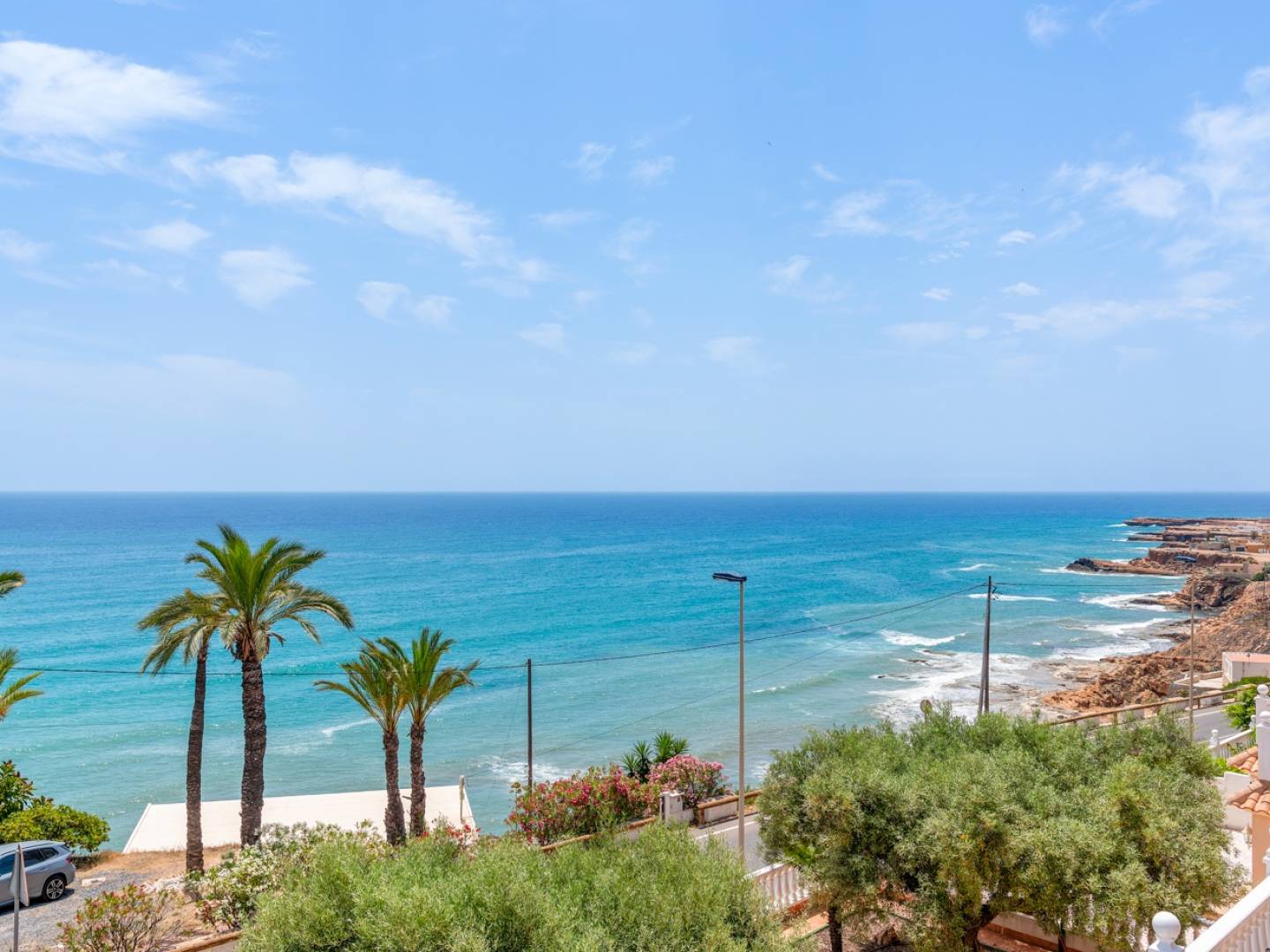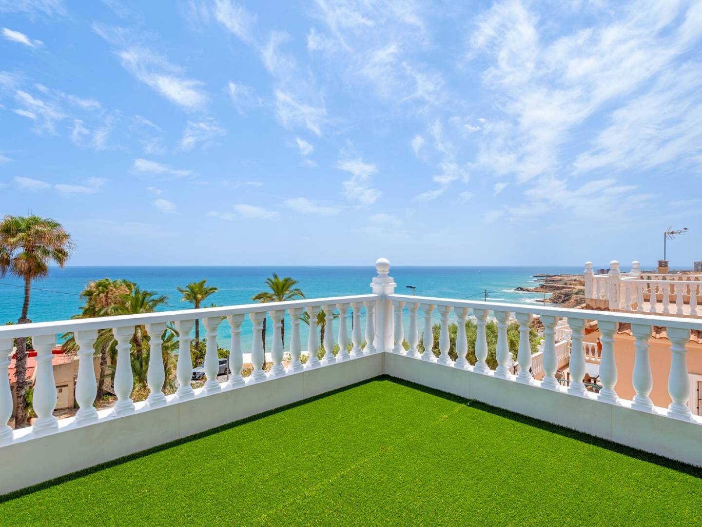 Cette élégante villa individuelle de 290 m², située dans le prestigieux complexe résidentiel El Faro à Torrevieja, a été récemment rénovée. Elle allie design moderne, fonctionnalité et emplacement privilégié avec une vue dégagée sur la mer Méditerranée. La maison est répartie sur trois niveaux. Le rez-de-chaussée comprend un double garage privé avec accès direct à la maison, une grande salle de loisirs idéale pour un home cinéma ou une salle de jeux, une cave à vin, une chambre supplémentaire, une salle de bain complète, une pièce technique avec réservoir de fioul et plusieurs espaces de rangement. L'accès direct à l'extérieur mène à une piscine privée entourée de gazon artificiel et d'une grande terrasse, parfaite pour profiter du climat méditerranéen. Le rez-de-chaussée principal dispose d'une cuisine indépendante entièrement équipée, dun salon-salle à manger lumineux avec cheminée, d'une chambre avec placard intégré et d'une salle de bain complète. Le salon donne sur une grande terrasse avec vue sur la mer, ainsi que sur plusieurs patios extérieurs propices à la détente ou aux repas en plein air. À l'étage supérieur, deux chambres supplémentaires avec accès à un large balcon offrant une vue sur la mer, ainsi qu'une salle de bain complète. Toutes les pièces sont spacieuses, lumineuses et dotées de placards intégrés. Parmi les équipements supplémentaires : climatisation, cheminée, buanderie, terrasse couverte, chauffage au fioul, débarras et parking supplémentaire sur la parcelle. La propriété est située dans une communauté fermée qui assure sécurité et tranquillité. Une opportunité rare pour ceux qui recherchent une maison rénovée avec vue sur la mer dans lun des quartiers résidentiels les plus prisés de Torrevieja.