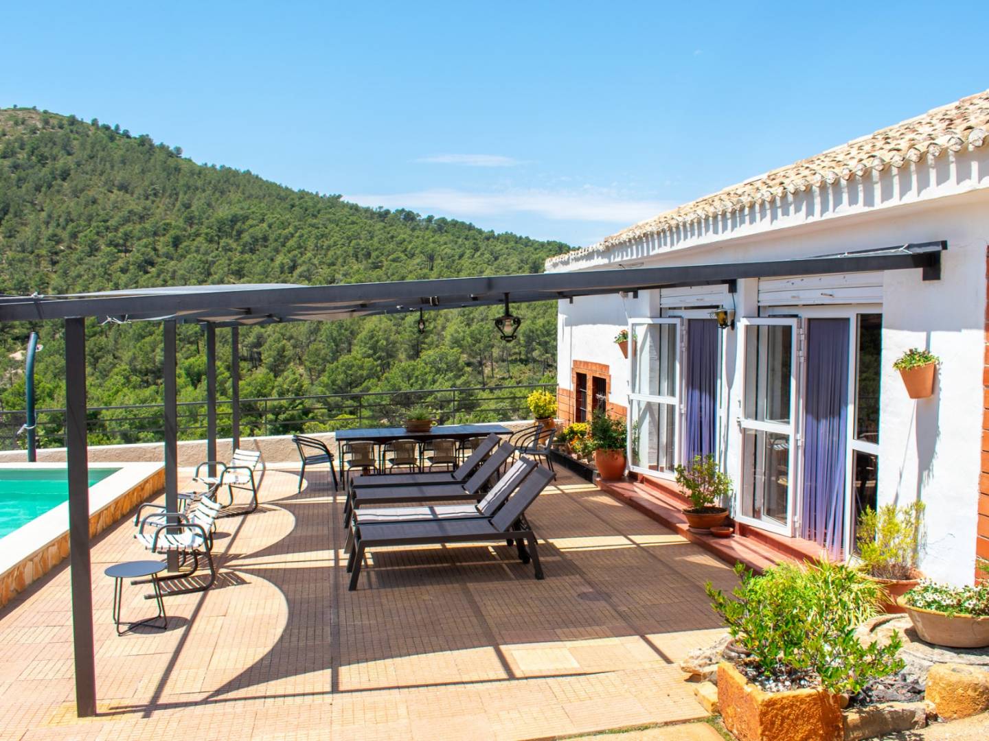 Cette propriété, à 855 mètres d'altitude , offre un environnement d' intimité et de tranquillité absolue , avec des vues panoramiques incomparables dans un cadre naturel protégé.