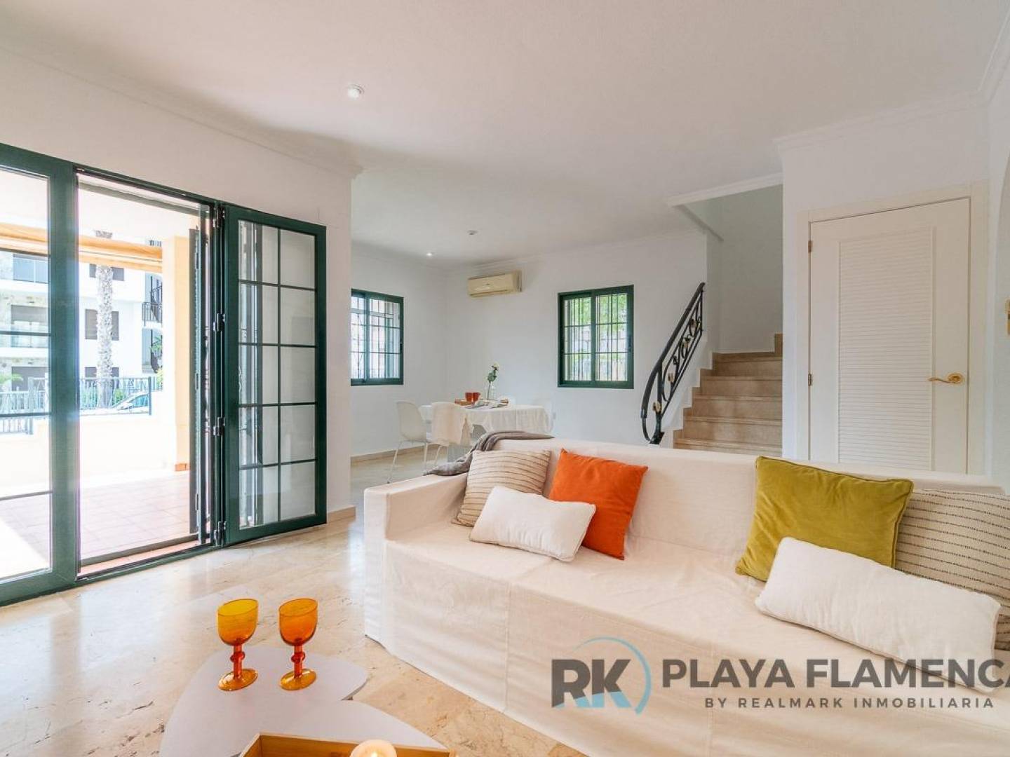 Dans l'un des quartiers les plus calmes et exclusifs du lotissement VillaMartin, à proximité immédiate de trois terrains de golf et disposant de son propre jardin et de sa piscine, se trouve cette magnifique villa avec vue sur les espaces verts, idéale pour une grande famille.~La propriété est située à proximité de trois terrains de golf : Las Ramblas, Campoamor et Villamartín. Elle bénéficie également d'un accès facile à la sortie de l'autoroute AP-7, avec des liaisons directes vers les aéroports d'Alicante (environ 40 km) et de Murcie (environ 40 km).~Elle dispose d'une piscine commune avec jardins, où vous pourrez bronzer et nager avec les autres voisins. Elle dispose également de son propre jardin, de terrasses carrelées et d'une piscine à rénover.~La taille de la villa est idéale pour ceux qui recherchent de l'espace ou pour recevoir des invités et des amis ; elle comprend 3 chambres, 2 salles de bains, un grand terrain et un jardin.~Le terrain de 410 m² offre un espace idéal et une sensation d'indépendance, avec son jardin avant pavé doté d'une entrée pour véhicules et son jardin arrière pavé offrant une vue dégagée. Cependant, grâce à son revêtement pavé et à son faible encombrement, il ne nécessite que peu d'entretien et de travaux. La villa est exposée plein sud sur sa façade principale, ses terrasses et son solarium, ce qui lui permet de bénéficier du soleil presque toute la journée. Cette villa est sans aucun doute le rêve de beaucoup.~~L'agencement de la maison : accessible depuis le jardin, comme mentionné précédemment, se trouve la première terrasse, orientée sud-sud-ouest. Elle est ensoleillée toute la journée, mais, ouverte sur le jardin et la rue, elle laisse entrer une brise légère. Cette terrasse spacieuse, avec de la place pour des canapés et des tables, mène à l'entrée principale de la maison par une porte blindée, qui s'ouvre sur le spacieux et lumineux salon-salle à manger avec cheminée. La cuisine séparée, avec sa propre porte et sa propre fenêtre, vous permet de cuisiner sans avoir à vous soucier des odeurs et des graisses qui pourraient pénétrer dans le reste de la maison.~~Au rez-de-chaussée se trouvent également une chambre spacieuse avec placard intégré et une salle de bain avec douche à l'italienne. Ainsi, si la famille compte une personne âgée ou à mobilité réduite, elle peut vivre seule à cet étage sans avoir à monter et descendre les escaliers.~Le premier étage, accessible par un escalier intérieur à deux volées facile d'accès, dessert les deux autres chambres avec placards intégrés et accès direct au grand solarium et au balcon. Cet étage dispose également d'une deuxième salle de bain, cette fois équipée d'une baignoire relaxante et de meubles intégrés.~Chaque étage dispose ainsi de sa propre salle de bain, de ses chambres et d'espaces pour profiter de l'extérieur comme de l'intérieur, avec des terrasses, ce qui en fait la maison idéale pour une grande famille.~~Cette maison mérite une visite pour ses volumes, sa luminosité, sa proximité avec toutes les commodités et le golf, ainsi que pour sa tranquillité.