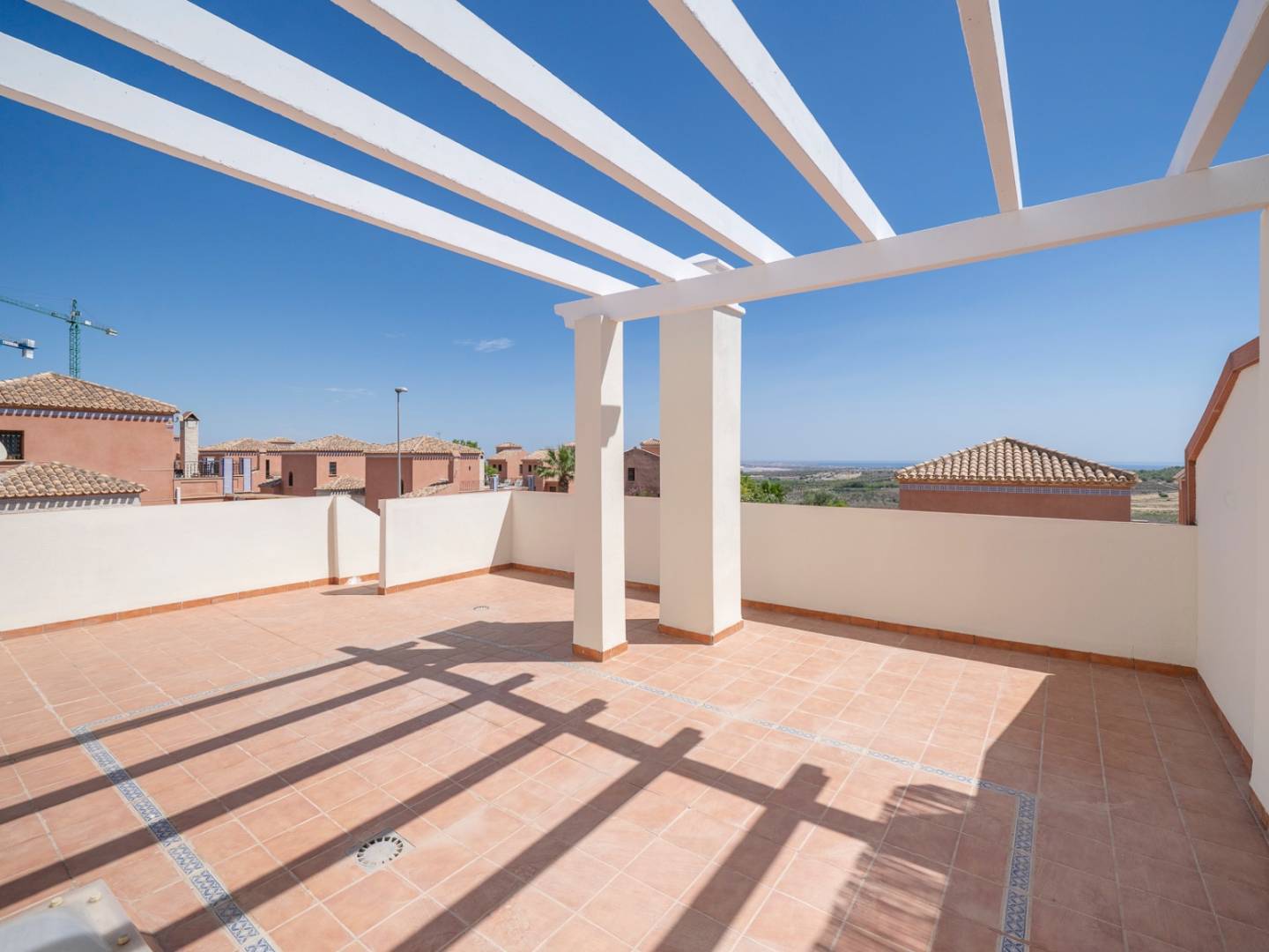 Située dans la prestigieuse Ciudad de las Comunicaciones, cette maison quad chaleureuse allie confort, luminosité et cadre paisible. Construite en 2007, elle offre 63 m² comprenant un salon avec cuisine ouverte et cheminée, deux chambres avec placards intégrés dont une avec salle de bain attenante ainsi quune deuxième salle de bain complète. À lextérieur, un porche orienté à lest avec vue sur la piscine commune et un parking privé sur la parcelle. Lun des atouts majeurs de cette propriété est son vaste solarium de 47 m², parfait pour profiter du soleil et des vues dégagées. La résidence sécurisée dispose de jardins communs soignés et dune piscine, offrant un cadre idéal aussi bien pour y vivre à lannée que pour les vacances.