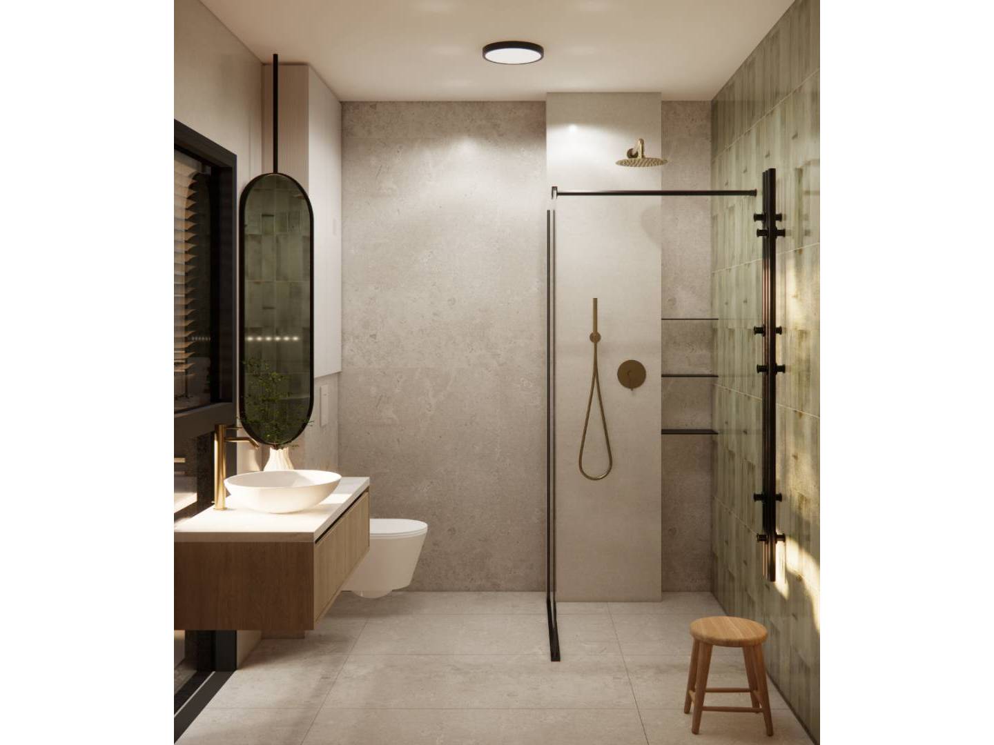 Les finitions haut de gamme incluent le chauffage au sol dans les salles de bains , la climatisation intégrée et les stores extérieurs motorisés , alliant élégance, technologie et confort. Le tout s'inscrit dans une architecture contemporaine privilégiant le développement durable.