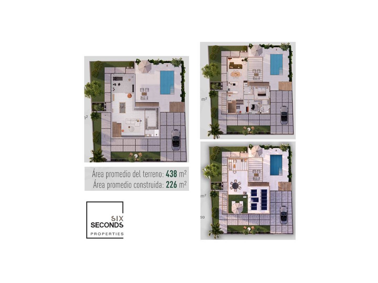À l'extérieur, les maisons offrent de généreux espaces privés , avec des jardins soigneusement aménagés , une terrasse panoramique ensoleillée et de vastes terrasses qui invitent à profiter du climat méditerranéen toute l'année. La piscine privée devient le centre de la vie sociale et familiale, entourée d'un environnement naturel garantissant intimité et tranquillité.