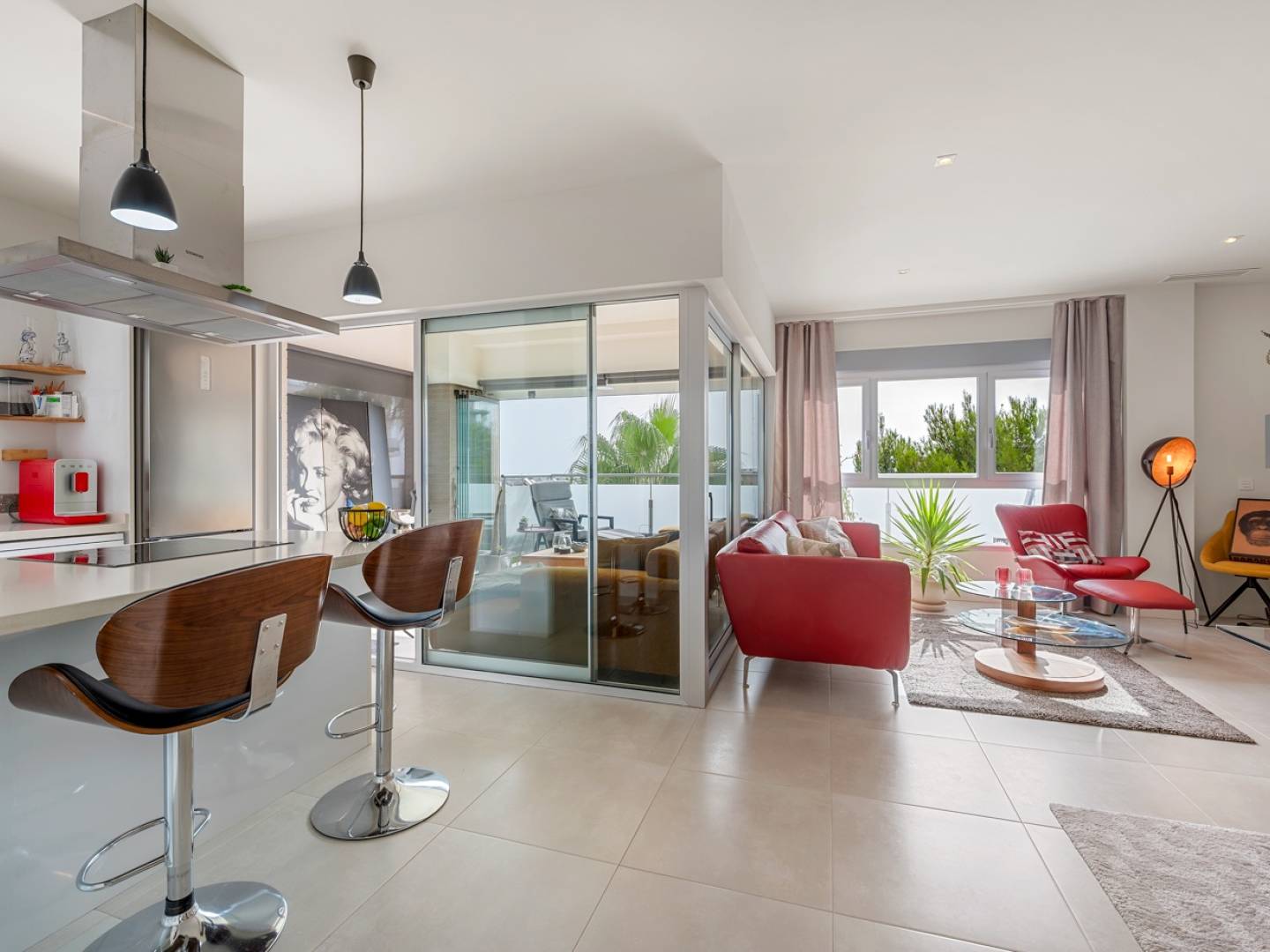 Cet appartement arbore un design moderne et fonctionnel , avec un séjour lumineux s'ouvrant sur une terrasse vitrée , idéale comme espace de vie supplémentaire ou salle à manger offrant une vue imprenable sur la mer Méditerranée . Cet espace invite à la détente et à savourer l'incontournable art de vivre méditerranéen.