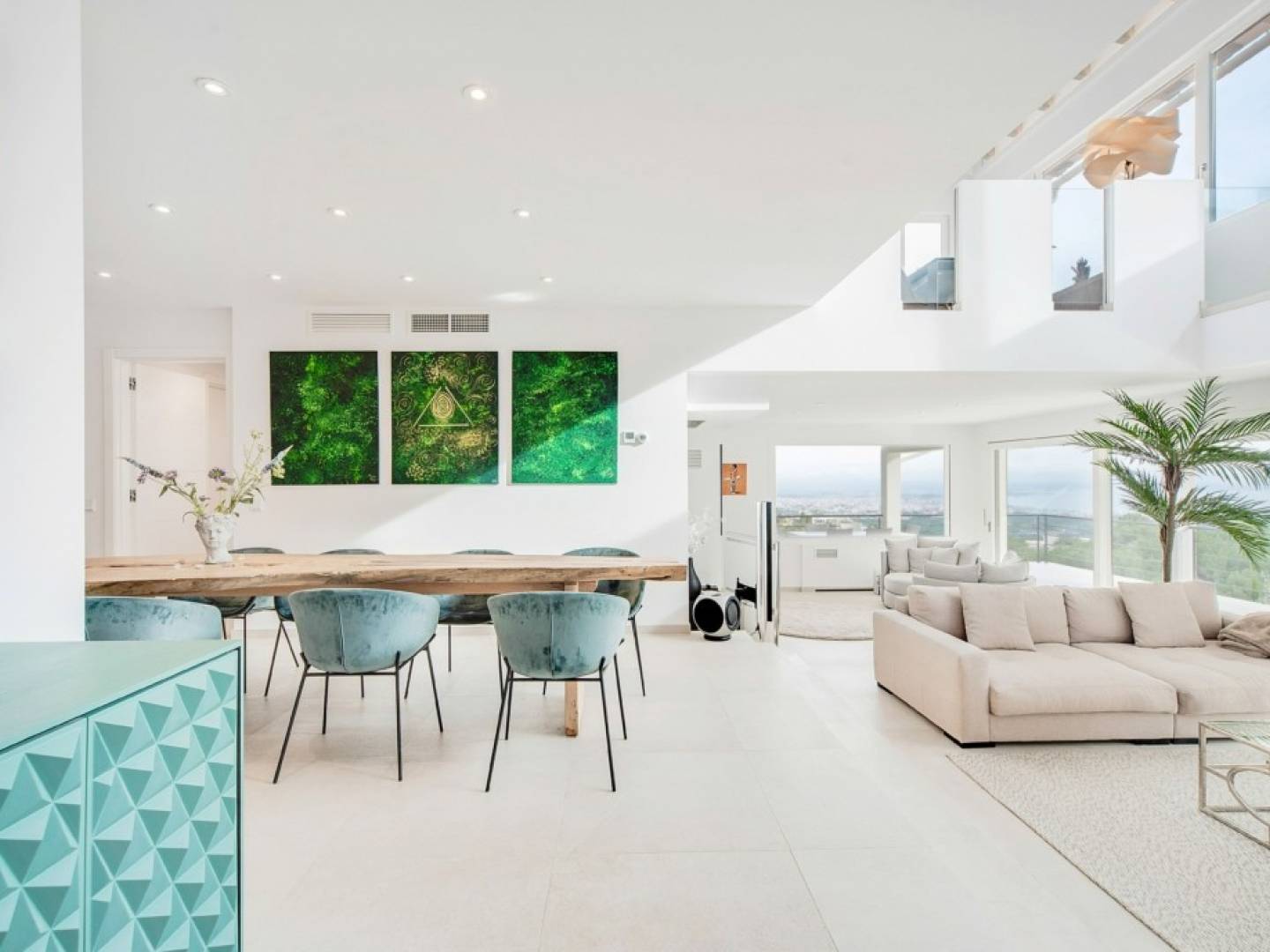 Son Vida, surnommée « Beverly Hills de Majorque », est le rêve de nombreuses personnes dans le monde entier ! Envie de rejoindre rapidement cette communauté exclusive ? Découvrez cette maison de rêve à un prix très raisonnable et offrant tout le confort souhaité ! Cette villa magnifiquement rénovée à Son Vida s'étend sur trois niveaux et offre une vue spectaculaire sur Palma et la mer depuis presque toutes les pièces. Accessible par une allée privée avec un jardin paysager , l'entrée mène à un garage au même niveau que la piscine à débordement et la terrasse , idéale pour se détendre en admirant la vue panoramique. Le rez-de-chaussée comprend un espace spa potentiel, un accès direct au garage et un ascenseur ou un escalier menant aux étages supérieurs. L'entrée principale se trouve au premier étage, accessible par un escalier extérieur. Vous y trouverez une chambre d'amis avec salle de bains (actuellement transformée en bureau), des toilettes invités, ainsi qu'un salon-salle à manger ouvert avec de hauts plafonds, une cheminée et deux grandes terrasses , idéales pour profiter du soleil ou de l'ombre tout au long de la journée. De grandes baies vitrées relient l'intérieur aux espaces extérieurs, optimisant la luminosité et la vue. Une cuisine moderne, un cellier et une chambre supplémentaire avec balcon à la française complètent ce niveau. À l'étage se trouvent trois autres chambres avec salle de bains privative, dont une suite parentale et une mezzanine avec une seconde cheminée et un coin salon . Un monte-plats relie la cuisine située en dessous pour plus de confort. Cette maison entièrement climatisée et dotée de finitions haut de gamme constitue un excellent investissement à seulement 10 minutes de la vieille ville de Palma et à 20 minutes de l'aéroport. Rare dans sa catégorie, cette villa allie intimité, luxe et vue imprenable dans une propriété exceptionnelle. Contactez-nous dès maintenant pour faire partie des heureux acquéreurs de cette maison de rêve !