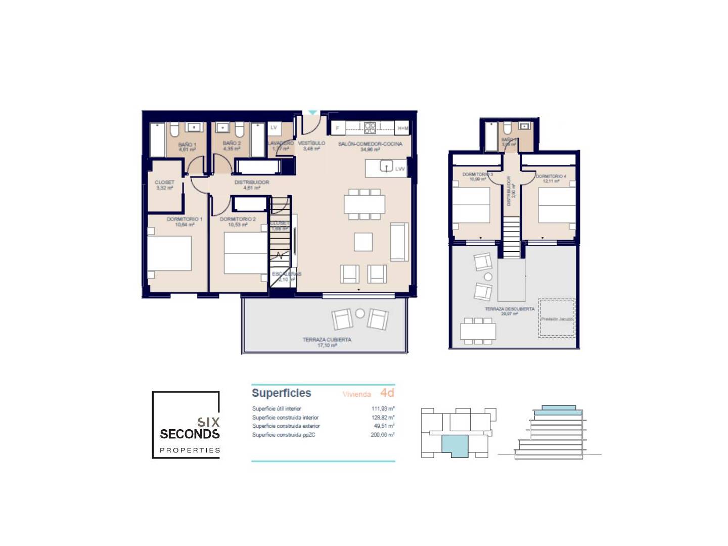 Cet appartement comprend 4 chambres, 3 salles de bains , une cuisine ouverte, un salon-salle à manger et une terrasse privée. Il dispose également d'une place de parking et d'un débarras privés.