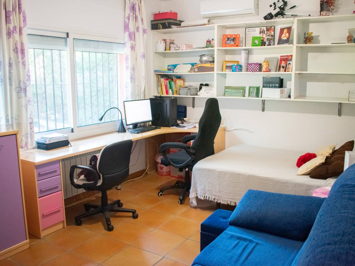 Au premier étage , on trouve un grenier aménagé en espace ouvert, actuellement utilisé comme bureau , entouré de baies vitrées panoramiques qui inondent l'espace de lumière naturelle et offrent une vue sur le jardin.
