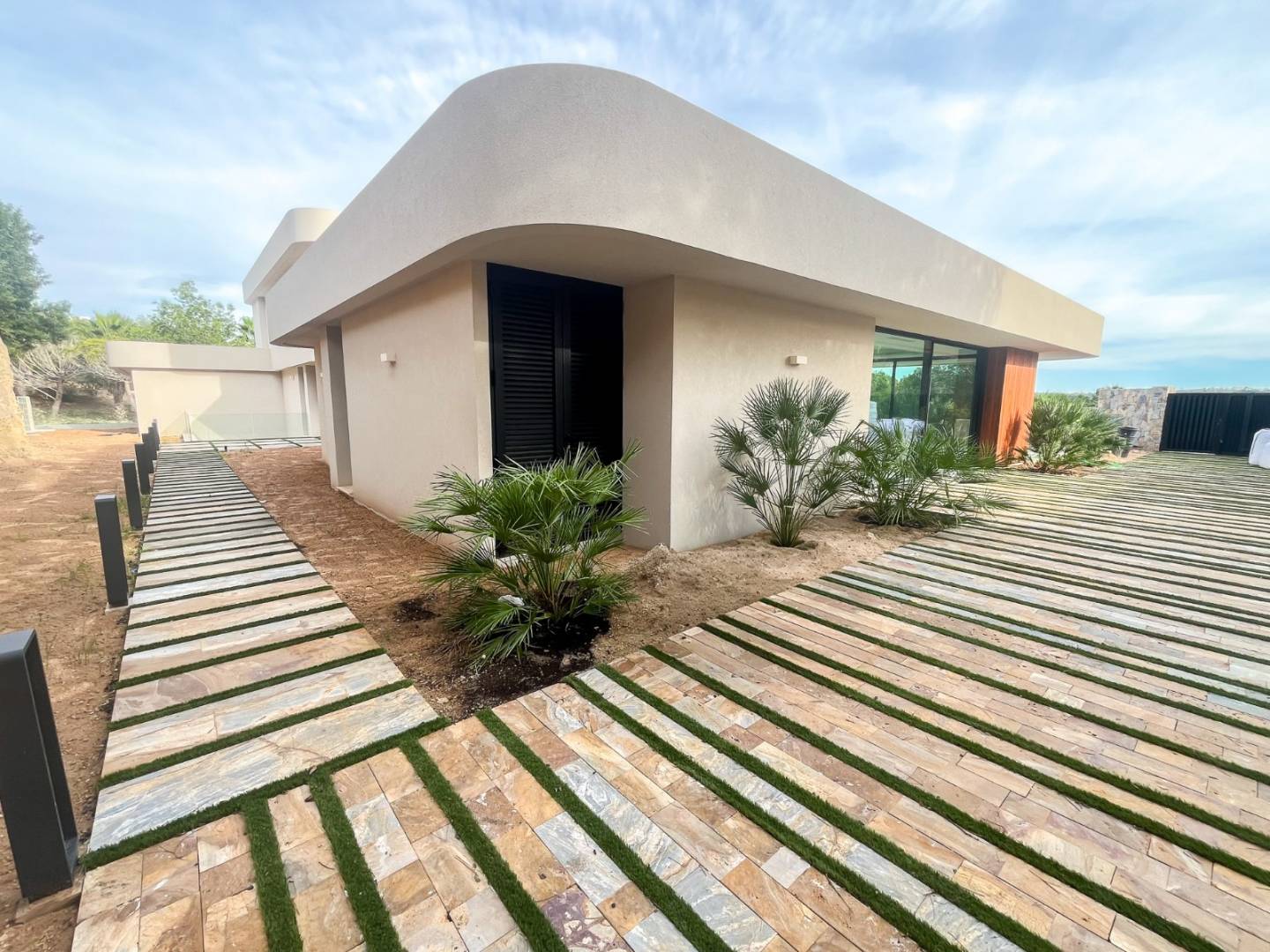 Avec environ 876 m² habitables et un terrain de 3 600 m² , la villa se distingue par ses lignes organiques et ses matériaux raffinés, alliant bois naturel traité, pierre et blanc méditerranéen . L’architecture s’ouvre sur le paysage grâce à de larges baies vitrées et une circulation fluide entre intérieur et extérieur, permettant à la lumière, au jardin et au golf de s’intégrer pleinement au quotidien. Il en résulte une atmosphère de calme, d’espace et d’intimité absolue.