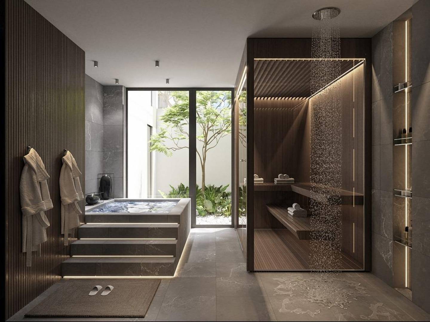 Cette résidence comprend quatre suites parentales , chacune dotée de sa propre salle de bains, offrant un agencement harmonieux des textures et une atmosphère intime et sereine. Les espaces de vie s'ouvrent sur des environnements spacieux et lumineux, sublimés par une domotique de pointe , un chauffage au sol et une climatisation performante, garantissant un confort absolu en toute saison. Le bureau privé offre un espace de travail calme et élégant, idéal pour un mode de vie international en toute discrétion.