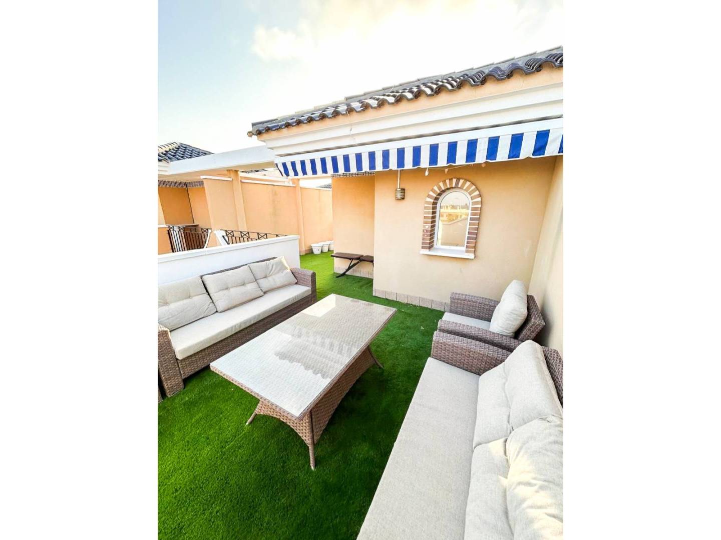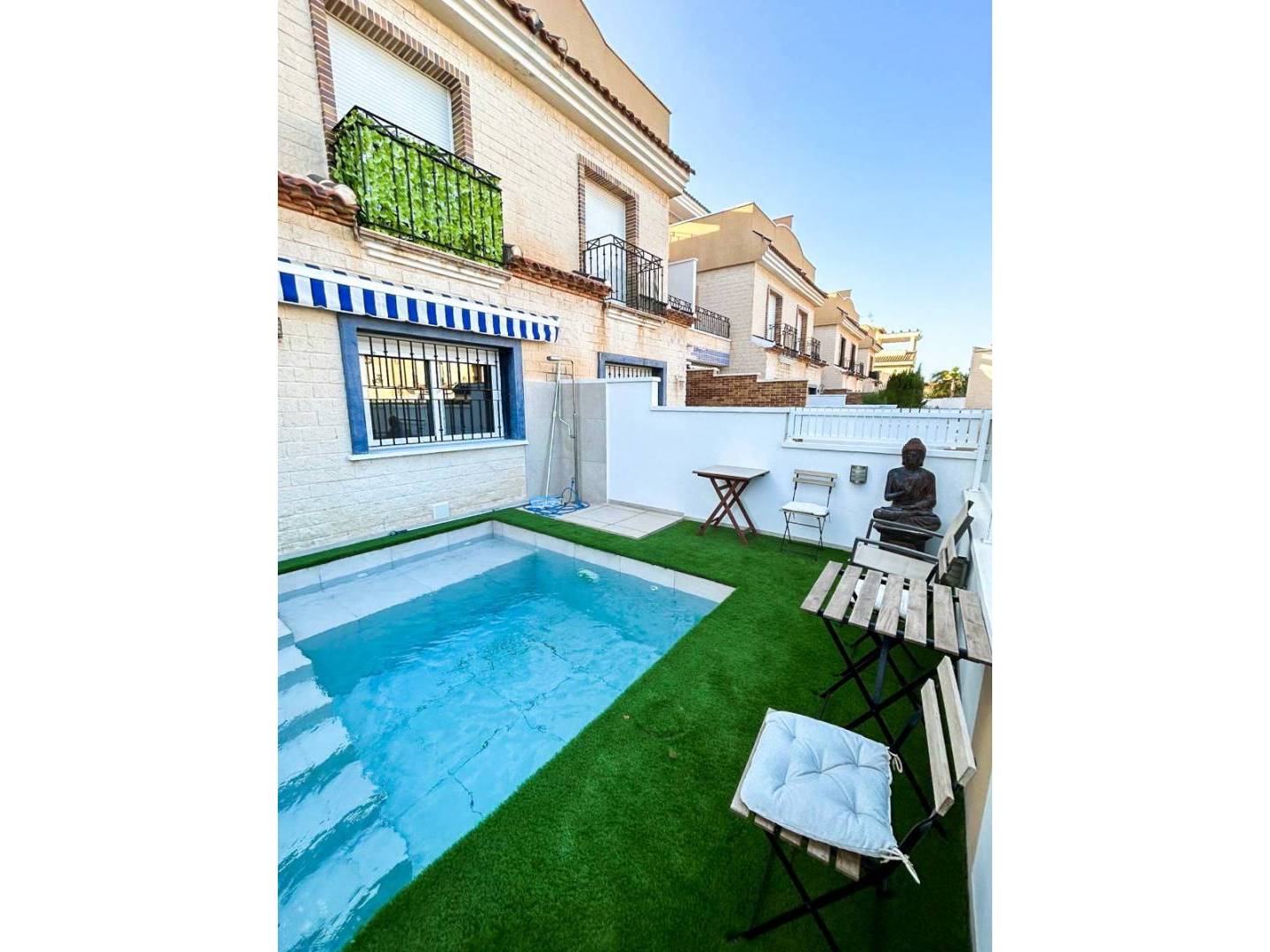 Parmi les détails qui font la différence, citons les grilles et moustiquaires dans toute la maison , le gazon artificiel sur les terrasses et son orientation vers levante , qui garantit le soleil du matin et la fraîcheur en été .