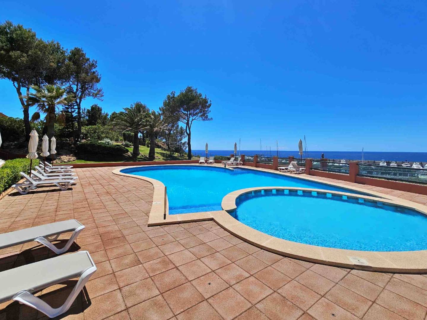 Vous recherchez un appartement penthouse moderne avec une vue imprenable sur la mer ? Alors celui-ci vous intéressera certainement ! Cet appartement est situé juste à côté du célèbre port de plaisance de Port Adriano, dans le village d'El Toro. À quelques centaines de mètres seulement se trouve une magnifique plage bordée de nombreux commerces et d'excellents restaurants. Un véritable sentiment de vacances toute l'année ! L'appartement offre une surface habitable d'environ 118 m². Vous y trouverez suffisamment d'espace pour vous et vos amis. Il comprend trois pièces, dont deux chambres et deux salles de bains. Vous disposez également d'une terrasse (environ 12 m²) où vous pourrez profiter du soleil, un atout précieux à Majorque, où le climat est splendide presque toute l'année. Orientée sud-ouest /ouest, elle est idéale pour admirer les couchers de soleil spectaculaires de Majorque. Et si vous souhaitez vous rafraîchir, vous pourrez profiter de la grande piscine, facilement accessible par ascenseur, qui offre elle aussi une vue imprenable sur la mer et le port de plaisance. Que demander de plus ?