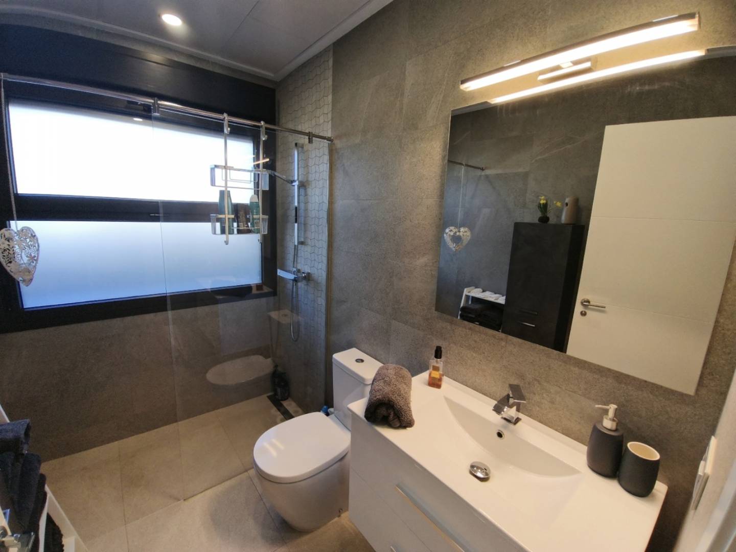 Cette villa moderne de plain-pied, individuelle et située à Vistabella Golf, redéfinit l'exclusivité sur la Costa Blanca . Implantée sur un terrain spacieux de 327,38 m² et offrant une surface habitable de 104,85 m² , cette propriété propose un style de vie élégant et fonctionnel, entièrement dédié au confort. Elle comprend trois chambres , dont une suite parentale avec salle de bains , une seconde salle de bains luxueuse , un cellier et un spectaculaire solarium de 41,26 m² équipé d' un jacuzzi privé et d'une pergola qui procure ombre et fraîcheur en toute saison.