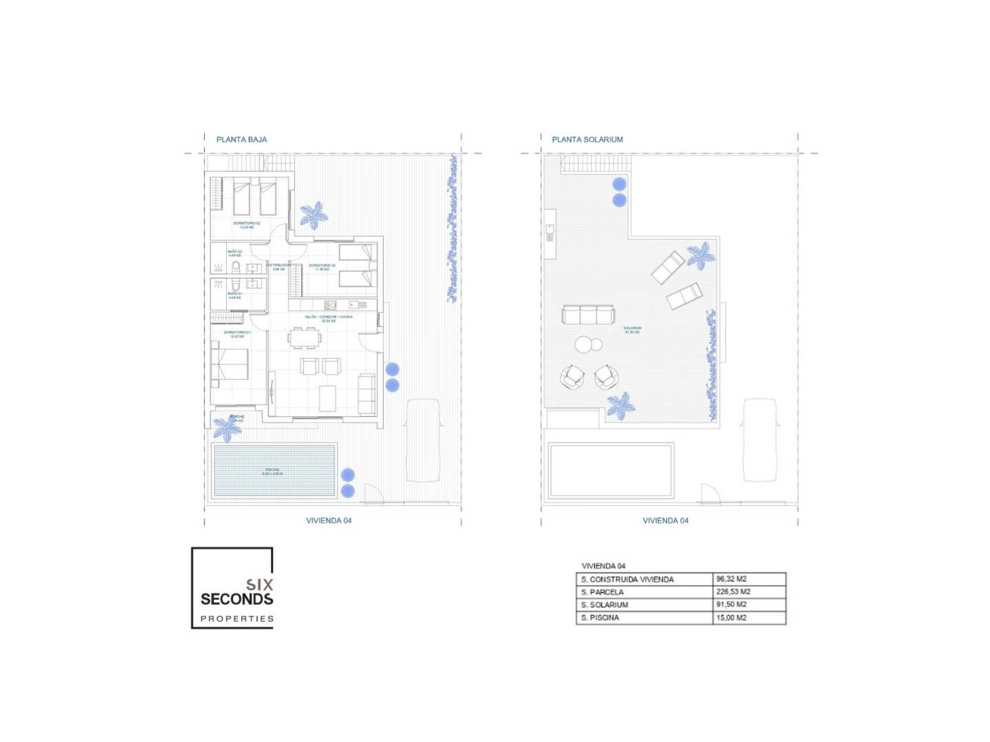 Ces villas se distinguent par leurs matériaux soigneusement sélectionnés et leurs finitions haut de gamme : placards aménagés , salles de bains complètes , éclairage intérieur et extérieur , pré-installation pour climatisation gainable , parking privé et une élégante piscine privée avec douche extérieure , idéale pour profiter des beaux jours de la Costa Cálida. Le solarium, équipé d’ une cuisine d’été et pré-installé pour les appareils électroménagers, offre un espace unique pour se détendre, recevoir et admirer les couchers de soleil méditerranéens.