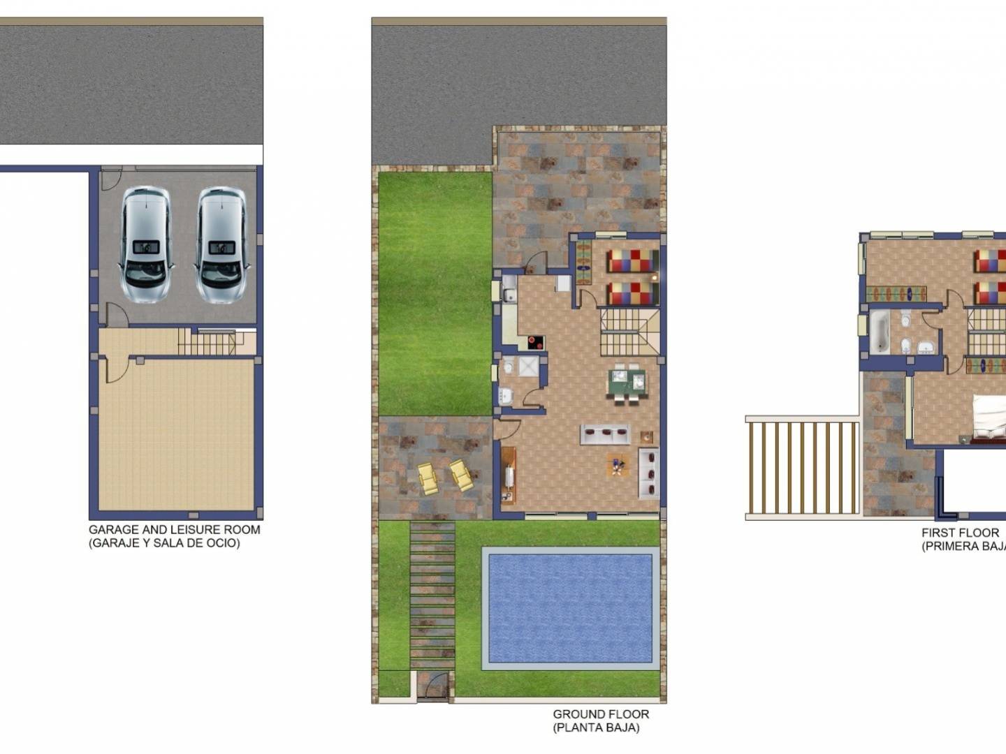 La propriété comprend une piscine privée , un jardin avec gazon synthétique et palmiers , ainsi qu'un espace extérieur bien aménagé, conçu pour profiter du climat méditerranéen toute l'année. Au sous-sol se trouvent un garage privé avec entrée indépendante et deux places de parking , ainsi qu'une grande pièce polyvalente pouvant servir de salle de cinéma, de salle de sport, de salle de jeux ou d'espace de détente, selon les besoins du propriétaire.