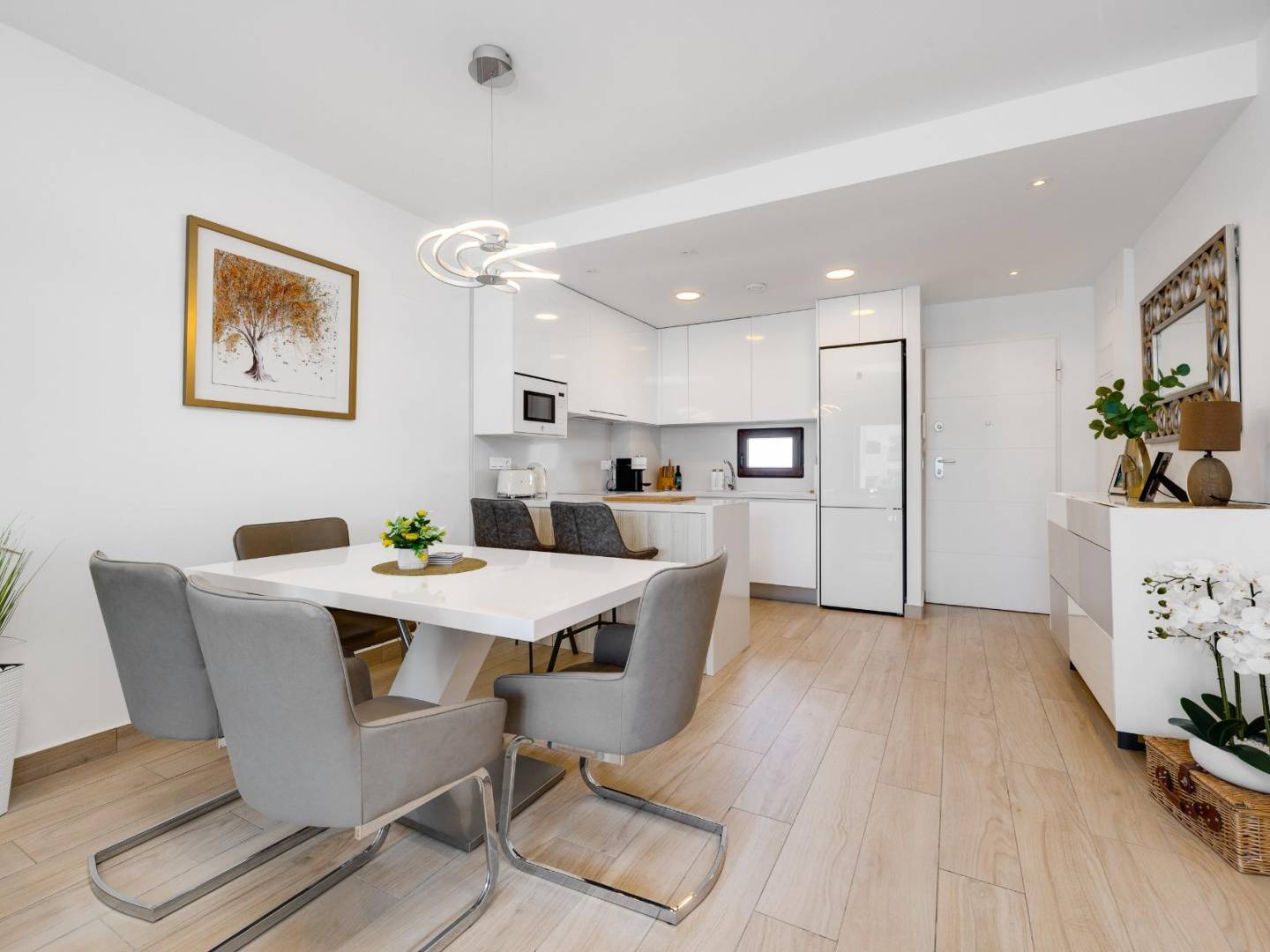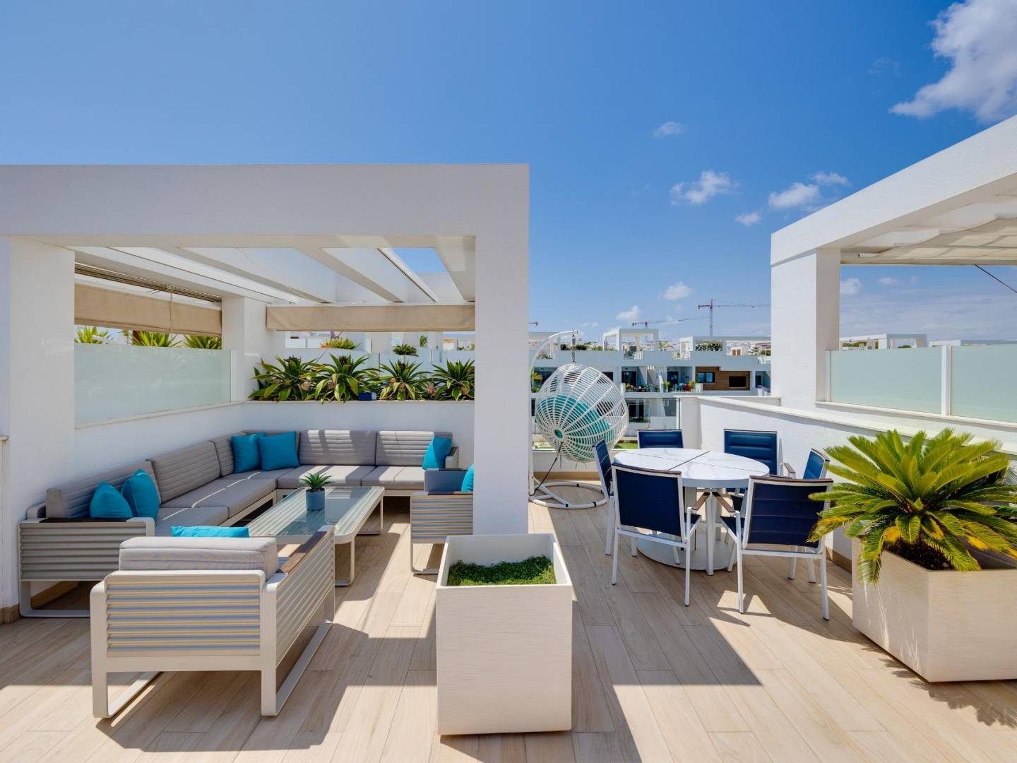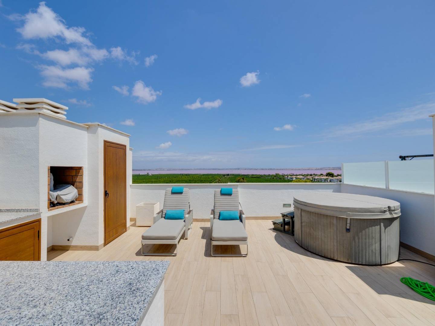 Bienvenue au bungalow numéro 52 dans le prestigieux complexe résidentiel Laguna Beach, construit par Immosol en 2021 situé à Los Balcones, Torrevieja. Cette propriété presque neuve n'a été utilisée que pour des vacances quelques fois au cours de l'année. Elle dispose d'un vaste espace de vie-salle à manger avec une cuisine ouverte entièrement équipée d'appareils modernes. Sortez sur votre terrasse vitrée qui mène directement à un grand solarium privé doté d'aménagements luxueux, y compris un jacuzzi offrant des vues à couper le souffle sur la lagune rose de Torrevieja , les montagnes et la mer .~~L'espace extérieur est parfait pour recevoir des invités ou se détendre au soleil ; il dispose d'un aménagement barbacoa (barbecue) et d'un espace de rangement dans son vaste bar de style américain , et comprend des ombres de pergola ainsi qu'une douche extérieure tout ce dont vous avez besoin !~~Cette belle maison se compose de deux chambres accompagnées de deux salles de bains l'une étant attenante à la chambre principale . L'ensemble de la résidence bénéficie d'une abondante lumière naturelle illuminant chaque coin tout en offrant des vues dégagées depuis toutes les pièces .~~Inclus, des places de parking souterraines pratiques ainsi que des espaces de rangement supplémentaires sans coût additionnel ! De plus, les résidents peuvent se faire plaisir dans l'une des plus exquises piscines communautaires d'Orihuela Costa magnifiquement présentée dans nos photos .~~Vivre ici signifie rejoindre de nombreux voisins satisfaits qui ont fait de cet endroit leur résidence permanente en raison du confort et de la qualité de vie , tandis que d'autres l'utilisent pendant les périodes de vacances choisies .~De plus, à proximité : Supermarché Mercadona à deux pas (400m), excellentes liaisons de bus améliorant l'accessibilité entre Torrevieja et Orihuela Costa etc., ainsi qu'un accès via l'AP-7 vers l'aéroport d'Alicante Une position idéale en effet !~