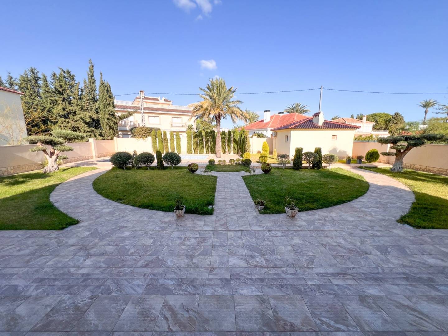 Située sur l'une des avenues les plus prestigieuses de Cabo Roig , cette luxueuse villa raffinée bénéficie d'une proximité privilégiée avec la mer , au sein d'un quartier résidentiel exclusif, entourée de jardins soignés et de villas haut de gamme. La propriété s'étend sur un terrain privé de 1 313 m² et offre 511 m² de surface habitable . Répartie sur deux niveaux , elle est agrémentée d'un solarium sur le toit avec vue panoramique , idéal pour profiter du climat méditerranéen tout au long de l'année. Elle comprend au total 11 chambres et 8 salles de bains , organisées en suites spacieuses et chambres indépendantes , certaines avec salle de bains privative et d'autres avec salles de bains partagées , conçues pour offrir un confort optimal à une grande famille et à ses invités. Chaque chambre dispose également de son propre dressing , alliant fonctionnalité et organisation. La villa propose un élégant séjour-salle à manger avec cheminée , plusieurs pièces polyvalentes, deux cuisines et une grande véranda offrant une agréable vue sur le jardin. L'extérieur est complété par une piscine privée et un jardin naturel méticuleusement entretenu. Dans le jardin même se trouve une dépendance totalement indépendante , équipée de salles de bains , qui peut être utilisée pour l'hébergement d'invités supplémentaires ou à des fins domestiques ou de service .