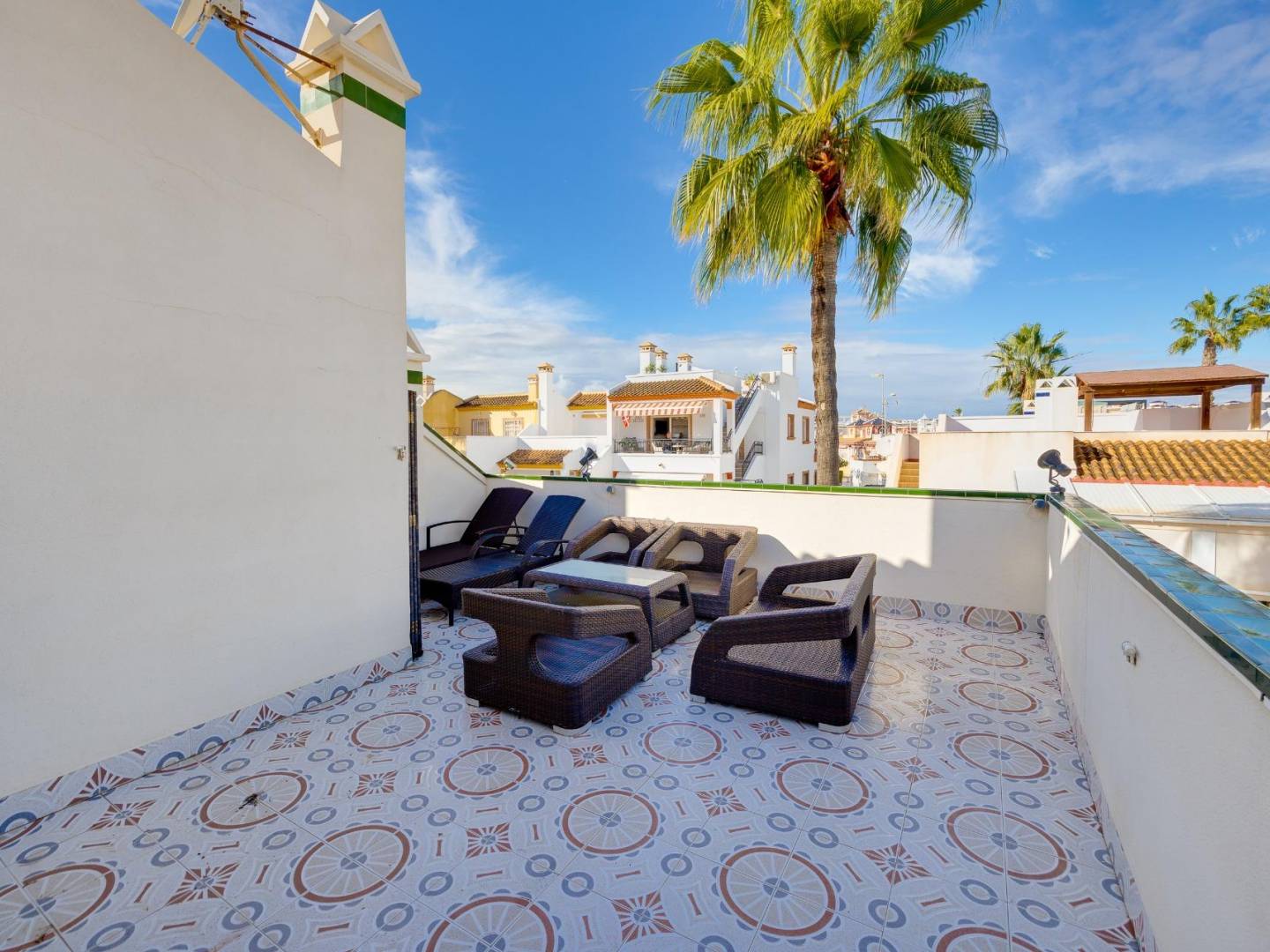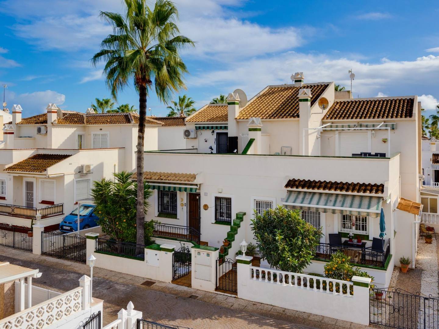 Nous vous présentons une fantastique opportunité de posséder cette charmante maison de ville d'angle au style quad, située dans la très recherchée Calle Niagara à Playa Flamenca. Cette propriété a tout ce dont vous avez besoin pour la transformer en votre maison de vacances de rêve en Espagne ! Le terrain spacieux dispose d'un magnifique jardin avec des plantes et d'un espace ample pour un stationnement sécurisé sous un pergola, offrant un abri à la fois du soleil et de la pluieun véritable confort. ~~En entrant dans la maison, vous trouverez un porche accueillant menant à l'intérieur où se trouve un vaste salon équipé de la climatisation et d'une cheminée confortableparfait pour la détente.~La cuisine ouverte est baignée de lumière naturelle grâce à plusieurs fenêtres qui permettent une ventilation facile ; de plus, tous les appareils sont relativement récents de marque BOSCH. À ce niveau, vous découvrirez également deux généreuses chambres doubles ainsi qu'une grande salle de bain.~Monter à l'étage vous conduit à une autre chambre double avec sa propre salle de bain complèteet ne manquez pas d'accéder au magnifique solarium privé de 30 m² offrant beaucoup de soleil et des vues dégagées !~Cette résidence est nichée au sein d'une communauté exceptionnelle disposant d'une merveilleuse piscine pour le plaisir des résidents !~De plus, son emplacement privilégié signifie que vous êtes à quelques minutes à pied (10 minutes de marche) des commodités essentiellesy compris des écoles supermarchés bars et restaurantstout en étant également à proximité (environ 10 minutes à pied !) du centre commercial La Mosca ou du centre commercial Zenia Boulevard ~Ne laissez pas cette incroyable opportunité passervous devez la saisir aujourd'hui !~