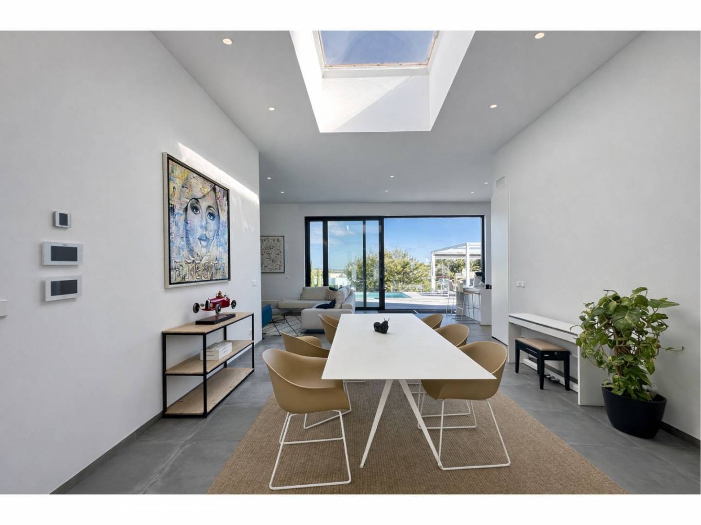 La villa bénéficie de hauts plafonds et d'une luminosité exceptionnelle, créant des espaces de vie spacieux et élégants. Son cœur est un salon lumineux avec une cuisine américaine entièrement équipée , reliée par une spectaculaire baie vitrée à une terrasse de 87 m² exposée plein sud , idéale pour profiter du climat méditerranéen toute l'année. À l'extérieur, une piscine d'eau salée chauffée de 10 mètres offre une vue apaisante sur la pinède, procurant une sensation unique de bien-être et d'exclusivité.