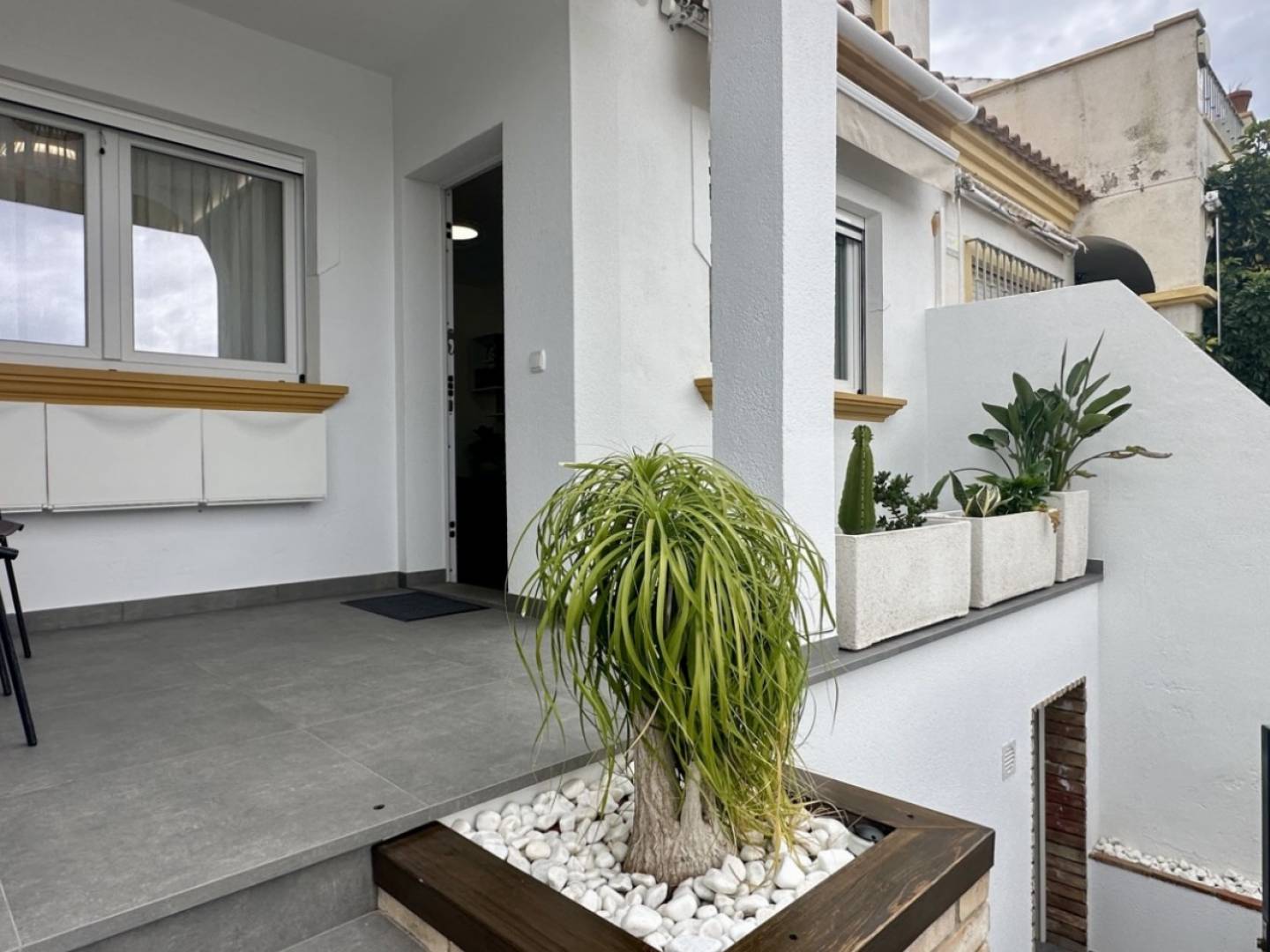 Magnifique maison de ville entièrement rénovée , située dans le prestigieux quartier résidentiel de La Florida, à Orihuela Costa , un emplacement privilégié alliant tranquillité, commodités et proximité de la mer. Cette propriété se distingue par son design moderne , ses pièces spacieuses et lumineuses , et son excellente fonctionnalité, ce qui en fait un lieu idéal aussi bien comme résidence familiale que comme maison de vacances haut de gamme . Répartie sur deux niveaux , la maison comprend trois chambres , un bureau , un grand séjour très lumineux et une cuisine entièrement rénovée avec coin repas . Au rez-de-chaussée se trouvent une chambre, des toilettes et la cuisine ouverte sur le séjour , tandis que l'étage supérieur abrite deux chambres supplémentaires, une salle de bain complète avec douche et le bureau avec accès direct à une charmante terrasse privée , parfaite pour profiter du climat méditerranéen. La propriété a été entièrement rénovée avec de nouvelles installations électriques et de plomberie , un chauffage au gaz naturel avec radiateurs , un chauffage au sol électrique dans la cuisine et les salles de bain , et une climatisation gainable dans toute la maison. Des fenêtres de haute qualité , équipées de moustiquaires et de volets roulants électriques de sécurité , garantissent un confort thermique optimal, une excellente efficacité énergétique et une sécurité maximale. À l'extérieur, un élégant porche d'entrée offre un espace de détente supplémentaire, tandis que le sous-sol spacieux offre de nombreuses possibilités d'aménagement : salle de sport, salle de jeux, espace de loisirs ou grand espace de rangement. La propriété comprend une place de parking et un local de rangement , un atout essentiel dans ce secteur. Située dans un quartier résidentiel établi et facilement accessible, à quelques minutes des supermarchés, écoles, pharmacies, restaurants, du boulevard Zenia et des plus belles plages d'Orihuela Costa , cette propriété représente une excellente opportunité d'investissement et un cadre de vie exceptionnel sur la Costa Blanca .