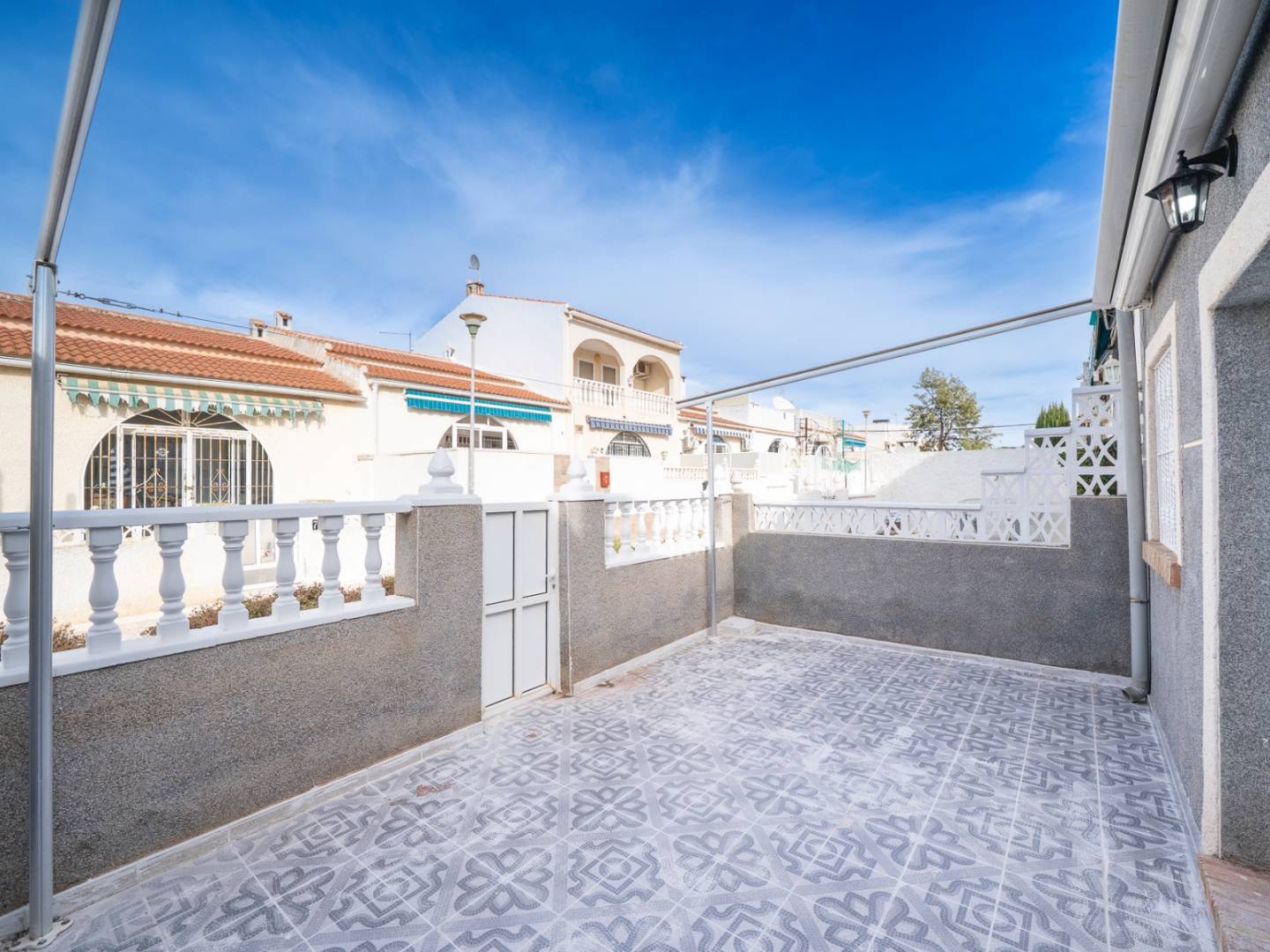 Bungalow de plain-pied rénové situé dans un quartier résidentiel calme et établi dEl Chaparral San Luis, à Torrevieja, avec un accès facile aux commerces, restaurants et services. Proche du parc naturel de La Mata et à environ 2 km de la plage. La propriété offre 56 m² construits sur un terrain de 81 m², entièrement de plain-pied. Elle est rénovée et fraîchement peinte, prête à être habitée. Elle comprend un séjour avec salle à manger et cuisine ouverte, deux chambres et une salle de bains. À lextérieur, une terrasse privative de 25 m² à lavant, entièrement carrelée et équipée dun store, accessible depuis une rue piétonne calme.