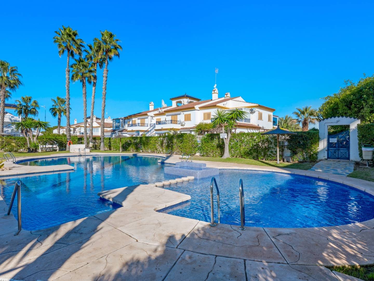 Ce charmant appartement exposé ouest est situé dans un quartier résidentiel calme et bien établi de Mil Palmeras, à seulement 800 mètres de la mer et à distance de marche de lune des plages les plus populaires de la Costa Blanca. Le bien dispose de deux chambres, la seconde étant une extension accessible par la chambre principale. Lappartement comprend une salle de bain moderne et élégante ainsi quune cuisine récemment rénovée au design contemporain. À lextérieur, vous pourrez profiter dune grande terrasse et dun agréable espace détente, idéal pour se relaxer au soleil de laprès-midi. La résidence propose également une piscine commune, parfaite pour les chaudes journées méditerranéennes. Caractéristiques principales : Orientation ouest 2 chambres (dont une accessible par la chambre principale) Salle de bain moderne et attrayante Cuisine rénovée Grande terrasse et espace extérieur Piscine communautaire Quartier résidentiel calme et agréable Situation privilégiée : À seulement 10 minutes à pied de la plage de Mil Palmeras, lune des plus appréciées de la région, avec des bars de plage ouverts toute lannée Parcs, jardins et espaces verts à proximité Supermarchés, commerces et restaurants internationaux Installations sportives, clubs de paddle et pistes cyclables À 15 minutes du golf de Lo Romero Excellentes connexions avec les aéroports dAlicante et de Murcie (Corvera) Écoles et établissements scolaires dans les environs Réservez votre visite dès aujourdhui et découvrez votre nouveau chez-vous sur la Costa Blanca.