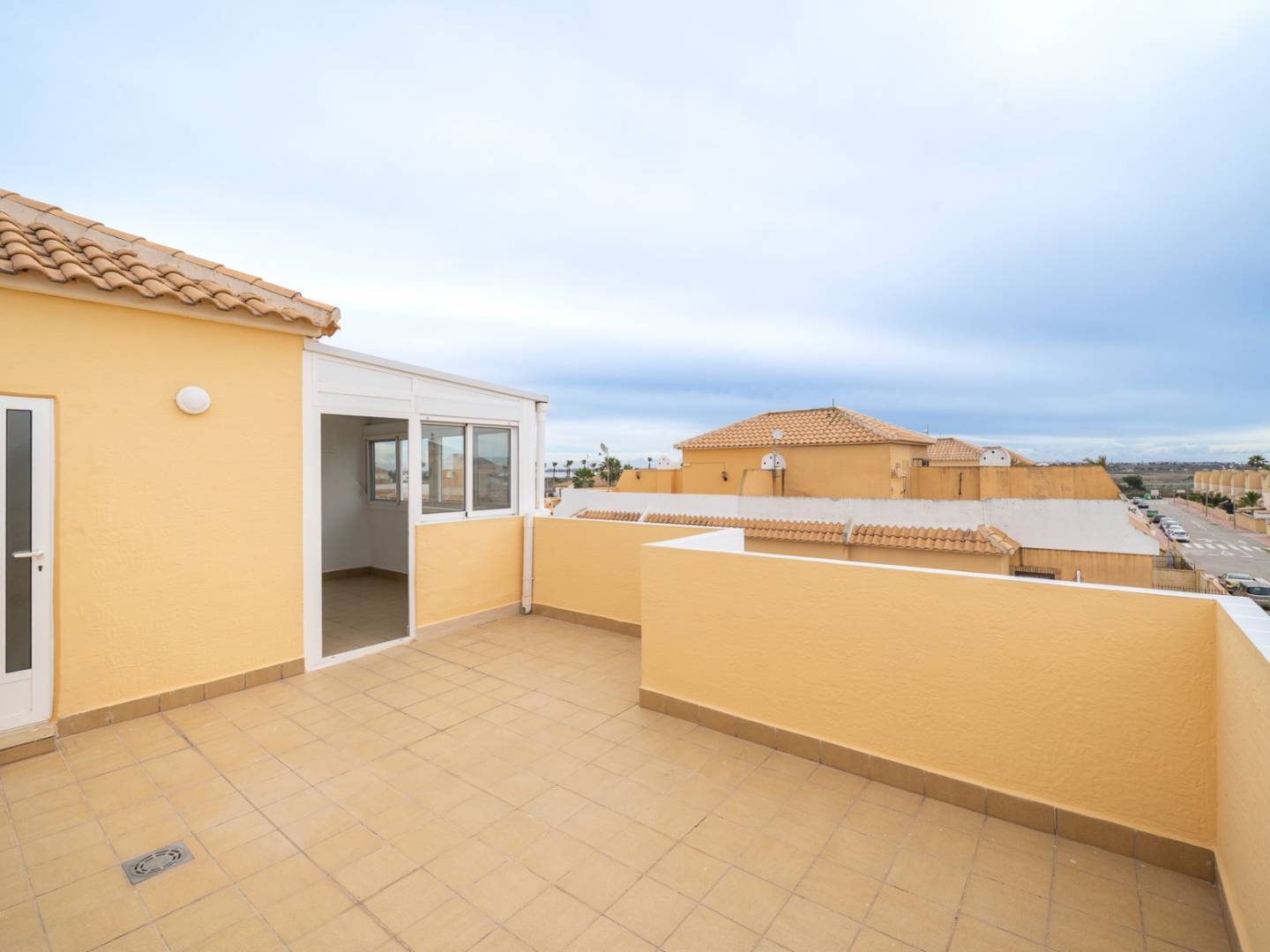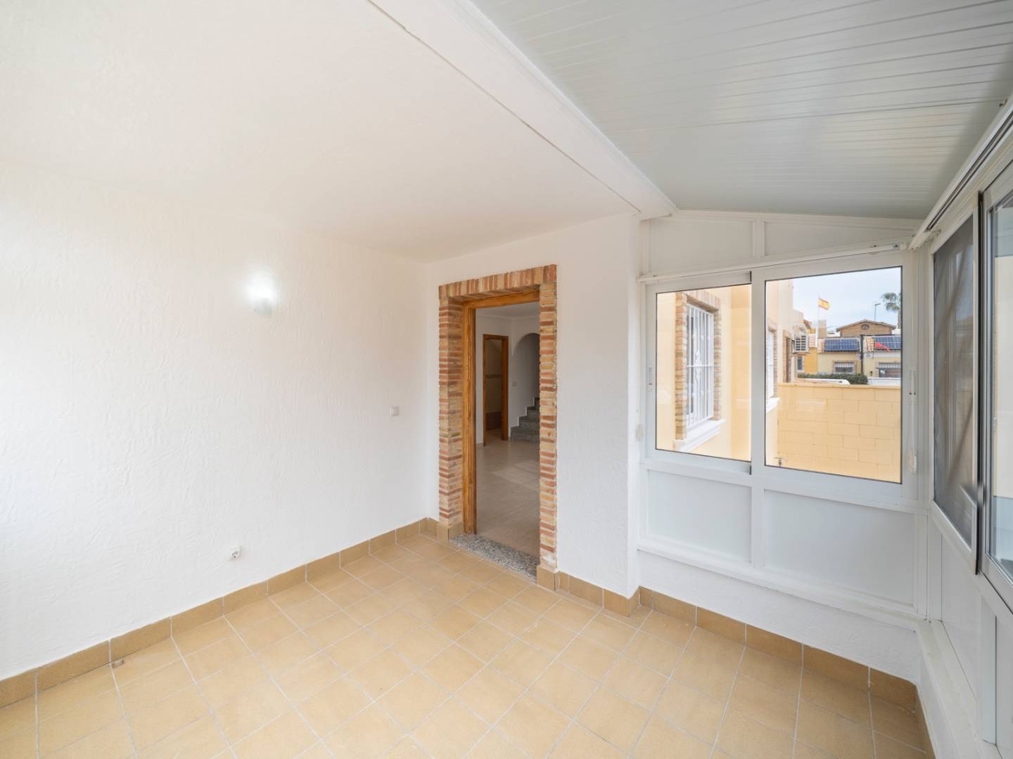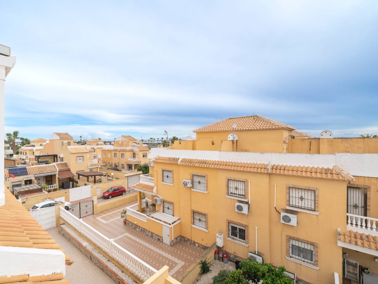 Propriété répartie sur deux niveaux plus solarium, située sur une parcelle privée avec jardin et piscine privée, au sein dune résidence disposant de deux piscines communautaires à Ciudad Quesada (Rojales). Le rez-de-chaussée comprend la parcelle avec terrasse et piscine privée, un hall dentrée vitré, un salon-salle à manger, une cuisine indépendante avec mobilier neuf et plan de travail en marbre noir, ainsi quune salle de bain complète. Le premier étage offre trois chambres, dont la chambre principale avec placard intégré et accès à une terrasse vitrée, ainsi quune seconde salle de bain. À létage supérieur se trouvent un solarium extérieur de 25 m² et un espace vitré de type tourelle de 8 m², idéal comme espace polyvalent ou rangement. Située à proximité des commerces, des espaces naturels et de tous les services, à quelques minutes du centre de Rojales et des plages.