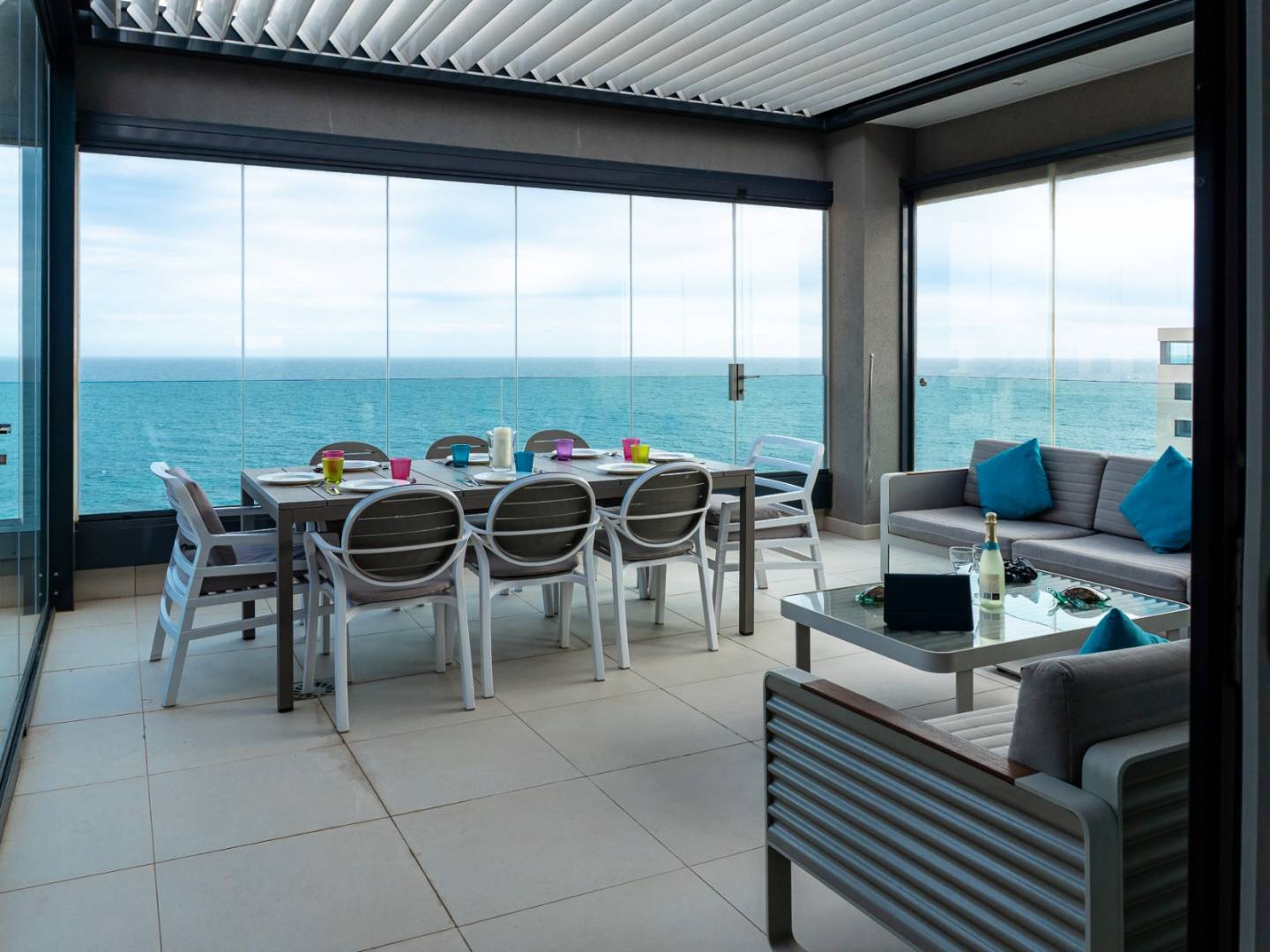 Depuis sa spectaculaire terrasse de 33 m² , équipée d' un système bioclimatique rétractable , vous profiterez d'une vue imprenable sur la mer Méditerranée , créant une sensation unique comparable à celle d'être à bord d'un yacht privé suspendu au-dessus des eaux bleues. Le salon, en continuité avec la terrasse , se transforme en un vaste espace panoramique où intérieur et extérieur se fondent en toute simplicité. De plus, une fenêtre orientée plein sud permet d'admirer de magnifiques couchers de soleil et baigne l'espace d'une douce lumière enveloppante en fin de journée.