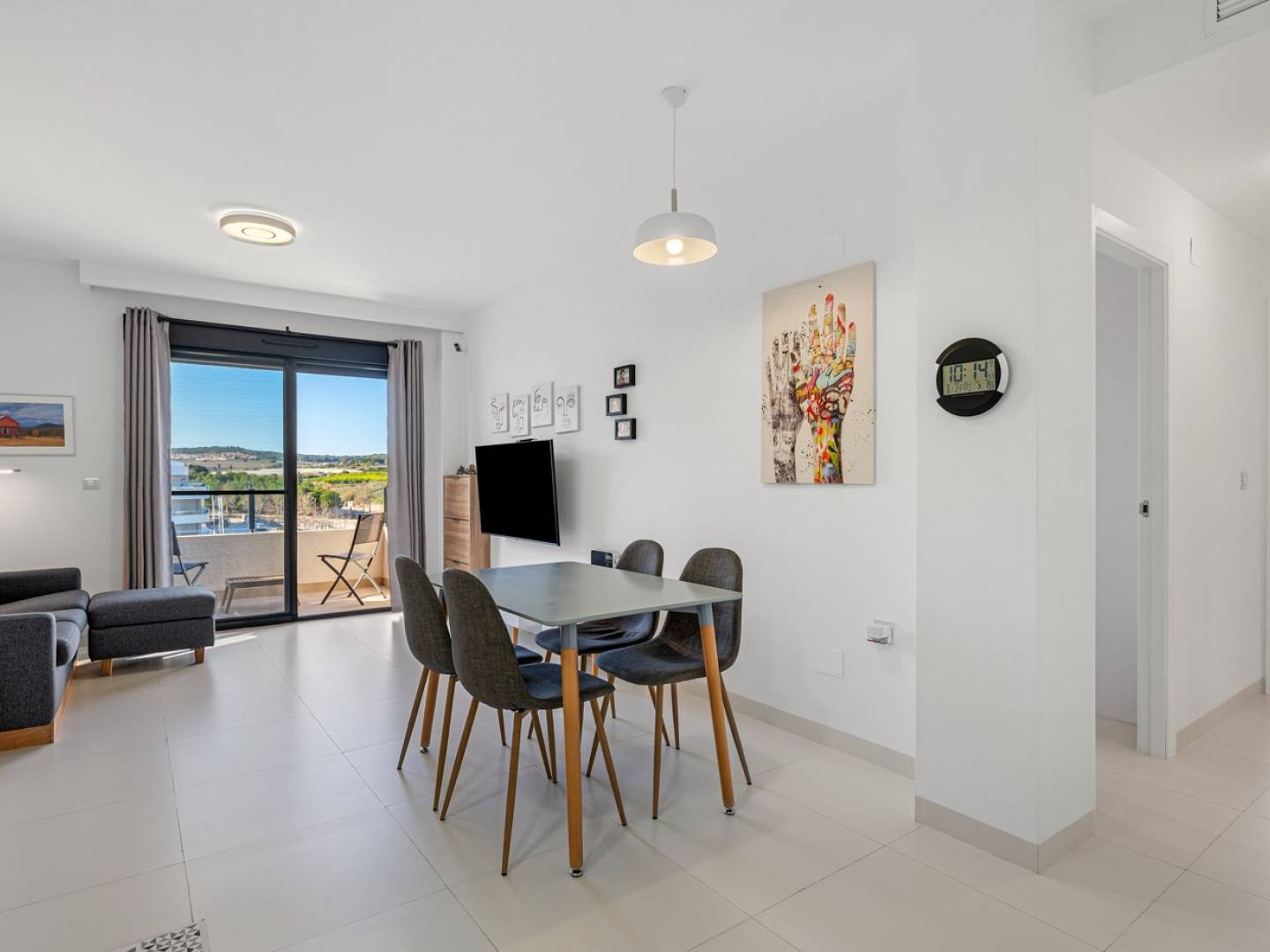 Situé dans lun des quartiers les plus recherchés de San Miguel de Salinas, cet agréable appartement dangle est idéal pour ceux qui recherchent calme, luminosité et confort, tout en restant proches de la côte et des commodités. Le bien dispose de deux chambres et de deux salles de bains, avec une disposition ouverte et fonctionnelle qui accentue la sensation despace. Grâce à son orientation sud-ouest, lappartement bénéficie dune belle luminosité naturelle ainsi que dun ensoleillement agréable laprès-midi et en soirée. Le séjour donne accès à un balcon, parfait pour se détendre et profiter de lenvironnement ouvert. Lappartement est vendu entièrement meublé et prêt à être occupé immédiatement. Il comprend également une place de parking souterraine privée et un débarras spacieux, idéal pour le rangement, les vélos ou le matériel de plage. La résidence dispose dune grande piscine commune, idéale pour se rafraîchir pendant les journées ensoleillées. Lemplacement constitue un véritable atout. Le prestigieux Las Colinas Golf and Country Club se trouve à quelques minutes en voiture. Le centre de San Miguel de Salinas, avec ses commerces locaux, ses services quotidiens et son marché hebdomadaire, est facilement accessible. Les plages dOrihuela Costa, le centre commercial La Zenia Boulevard et la ville de Torrevieja sont également à courte distance. Cet appartement dangle est un excellent choix comme résidence secondaire, investissement locatif ou habitation principale confortable, offrant calme, soleil et une situation recherchée avec un excellent rapport qualité-prix.