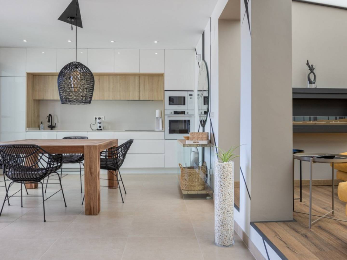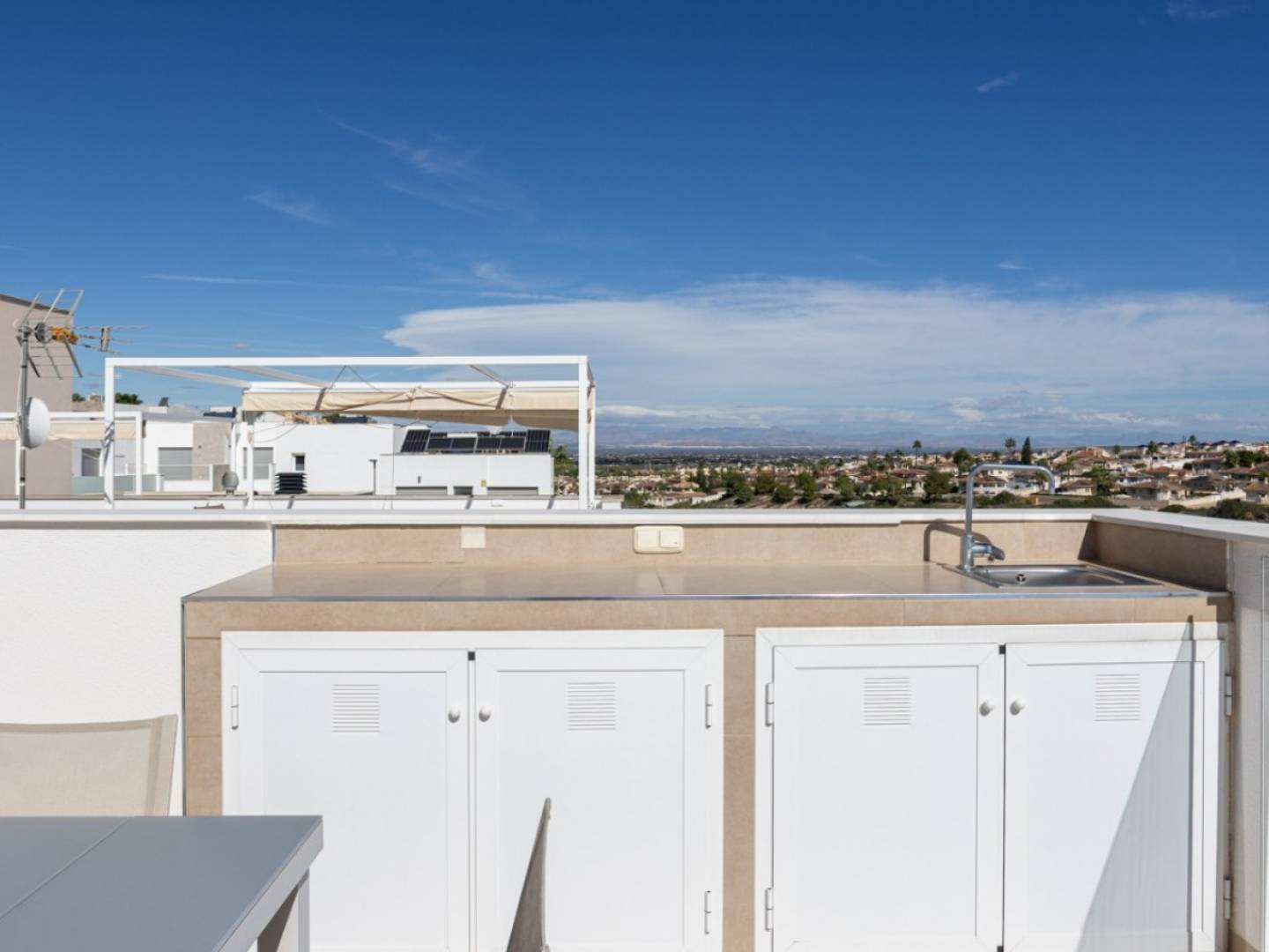 Cette élégante propriété, construite en 2018, est située dans l'un des quartiers les plus prisés et en plein essor de la Costa Blanca Sud. Faisant face à un parc protégé où toute construction est interdite, la maison offre une vue dégagée imprenable, une intimité absolue et une tranquillité absolue. Le centre-ville, avec ses restaurants, ses commerces et ses commodités, est accessible à pied. La propriété comprend un espace de vie lumineux et ouvert, comprenant un salon et une salle à manger, qui communique avec une cuisine moderne entièrement équipée. De grandes fenêtres laissent entrer une abondante lumière naturelle et offrent un accès direct à la terrasse et à la piscine privée chauffée par pompe à chaleur. Elle dispose de trois chambres et de trois salles de bains privatives. Une chambre est actuellement aménagée en dressing et une autre en bureau, mais toutes deux peuvent facilement être reconverties en chambres, offrant ainsi une grande flexibilité pour les familles ou les invités. Les espaces extérieurs comprennent une piscine privée chauffée, une terrasse, un balcon et un spacieux solarium sur le toit avec vue panoramique. La maison est équipée de panneaux solaires et d'une borne de recharge pour véhicule électrique, alliant confort et économies d'énergie. Elle est vendue entièrement meublée et prête à emménager.