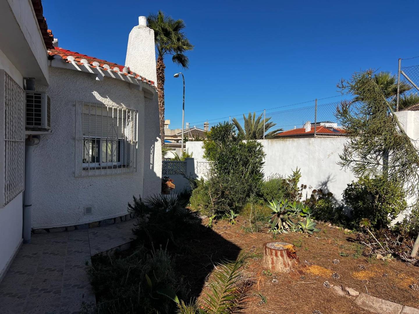 Villa individuelle située dans le quartier prisé d'El Chaparral, La Siesta, sur un terrain généreux de 820 m² avec un grand jardin bien entretenu offrant intimité et beaucoup d'espace extérieur.